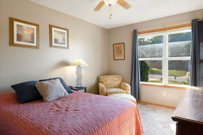 Welcome to this spacious 4-bedroom, 3-bathroom home, perfectly situated on a quiet cul-de-sac in a highly sought-after school district. Step inside to find a charming open kitchen with center island, perfect for gatherings, complemented by brand-new tile and luxury vinyl plank flooring throughout. The cozy wood-burning fireplace creates a warm and inviting living space, while ample storage keeps everything organized.The lower level offers incredible flexibility with a private bedroom, full bath, wet bar, workout/office room, and a large family room that opens to a covered patio--ideal for entertaining or relaxing. Upstairs, a spacious deck overlooks the 1/3-acre yard, complete with a storage shed.With its thoughtful layout, multiple living areas, and serene location, this home truly has it all!