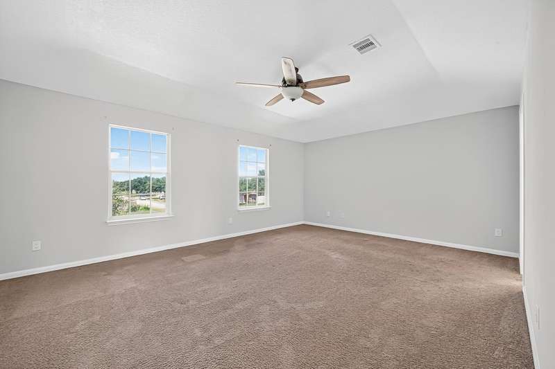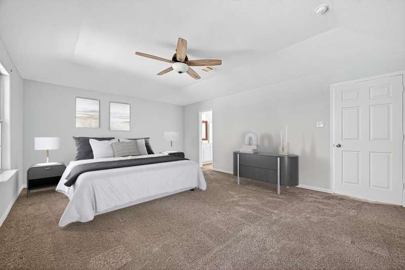 Step inside this beautiful two-story home, ready for move-in with over 2,100 square feet of inviting living space and newly painted interiors. The open living area is perfect for gathering with loved ones or simply unwinding at the end of the day. The kitchen is designed for the home chef, offering plenty of white cabinets and generous counter space. . All bedrooms are tucked away on the second floor for added privacy. The spacious primary suite features a relaxing en-suite bath with dual sinks, soaking tub, separate shower, and a large walk-in closet. An upstairs loft offers endless possibilities—ideal as a home office, game room, or second living area. Out back, the private yard provides plenty of room to design your dream outdoor retreat—whether it’s a pool, play area, or garden.