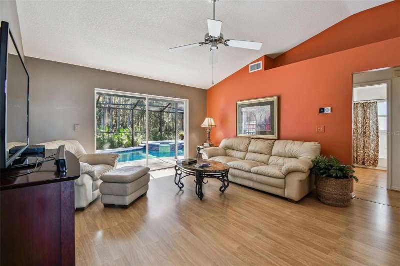 Discover the perfect blend of comfort and convenience in this beautifully maintained 4-bedroom, 2-bathroom single-family home offering 1,709 square feet of inviting living space on a generous sized Cul-de-sac lot. Built in 1996 and nestled in the vibrant Meadow Pointe community & just minutes from Wesley Chapel’s bustling amenities. All the large ticket items have been renewed. From the Three dimensional shingle roof (2024) to the Air conditioner (2023) to the hot water heater (2024). Step inside to an open-concept layout that maximizes natural light and flow. The spacious living room serves as the heart of the home, seamlessly connecting to the eat-in kitchen featuring ample cabinetry, a breakfast bar, and plenty of room for casual dining. Walking in the front door and to the left sits the first room, perfect as a home office, playroom, or fourth bedroom. The primary suite is a true retreat, boasting a generous walk-in closet and an en-suite bathroom with dual sinks and a relaxing soaking tub. Two additional well-appointed bedrooms share a full guest bath. Outside, your private pool and Spa oasis awaits, complete with a covered screened patio. Natural gas pool heater is ready to go for the winter months. Newly installed natural gas whole home generator putting out 24KWH ensures you will never be without power during storm season. New double paned energy efficient windows throughout the home. The attached 2-car garage provides ample storage and parking. Meadow Pointe’s resort-style amenities elevate everyday living. Enjoy multiple pools, tennis courts, playgrounds, fitness centers, and miles of walking trails – all without leaving the neighborhood. Top-rated schools, including Wiregrass Ranch High school are nearby along with shopping at The Shops at Wiregrass, dining hotspots, and easy access to I-75 for quick commutes to Tampa or Busch Gardens.