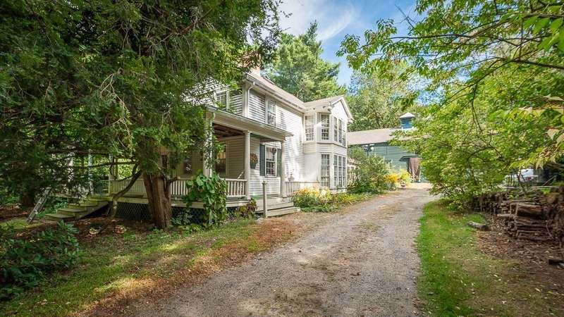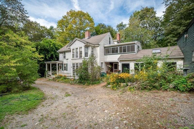 Historic 5 bedroom home with brand new 5 bedroom septic installed, a large sweeping wrap-around porch and gracious living-dining area with fireplace, window seat and cross mullion windows, and a windowed swing door into a stellar wet pantry only awaits a buyer with an eye for a classic New England home with great "bones". The arched entry foyer is so inviting and functional. The country kitchen boasts a sunny breakfast area, wood stove, half bath and direct access to the barn/garage. The barn's second floor is an art studio with a massive storage area. Let your imagination run as you explore this intriguing property that can be so much more. Boxford offers conservation areas, walking, swimming at Stiles Pond, wonderful options for public and private schools, easy access to Logan Airport and your get-a-ways to NH and ME. The established Pear, Apple and grape vines together with another barn, stone walls and direct walking trail access complete a property you don't want to miss.