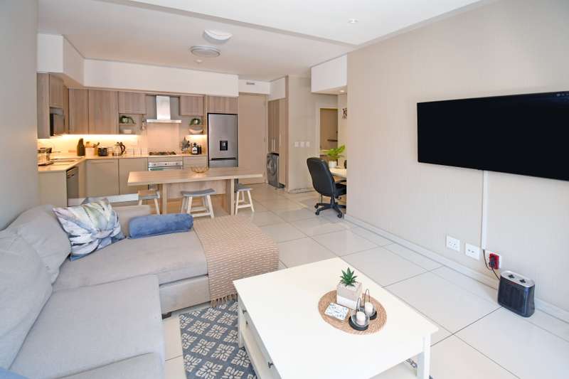 On the 2nd floor of the iconic Tyrwhitt, right in the heart of vibey Rosebank. The apartment offers good investment potential. Currently rented out on airbnb, with a very good occupancy. Or just live and work right in the centre of Rosebank's work and leisure hub An open plan lounge/dining room with a small balcony. The kitchen is well planned with space for a washer/dryer and dishwasher. A gas hob and electric oven for convenience. 2 airy bedrooms with the main en suite to a full bathroom. The 2nd bed is en suite to a large shower. A separate guest cloakroom. A large green space for some well earned rest and relaxation 24 hour concierge service. Excellent security. Power and water back up Piped building gas 2 basement parkings