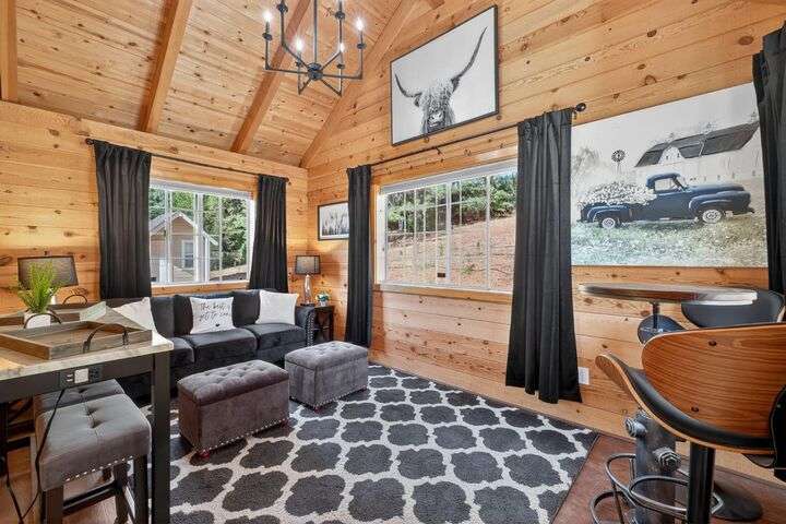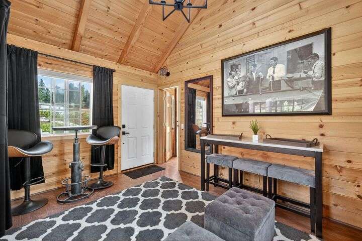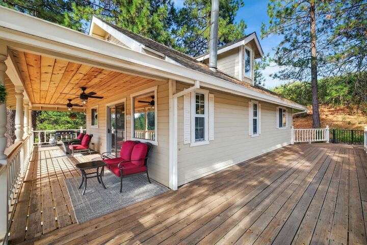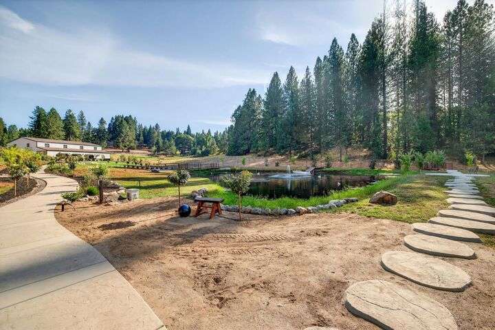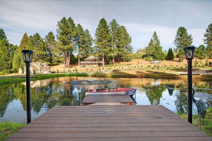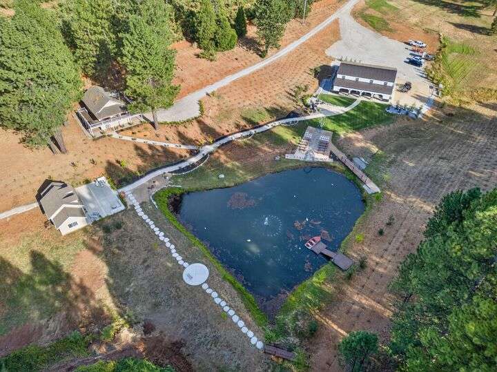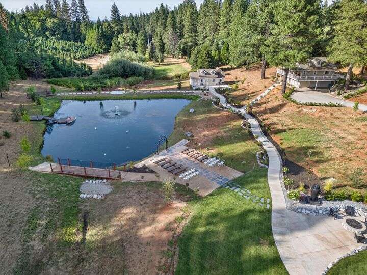 Unbelievable opportunity to own 10 private acres in the heart of Apple Hill, a true lifestyle estate with endless income potential. The property features a fully renovated 1-bed, 1-bath house that operates as a highly occupied vacation rental with strong income history. A second new-construction building showcases a bar that opens directly to the outdoor venue, plus a kids' entertainment center complete with a movie theater room, popcorn machine, and a speakeasy-style lounge perfect for grooms or guests. A third brand-new 60x60 recreation center offers a versatile event space with a dance floor, elegant chandeliers, oversized propane fireplace, and abundant storage for party tables and chairs designed for seamless weddings and large gatherings. Outdoors, the estate is equally spectacular with a scenic pond enhanced by LED lighting, charming bridges, meandering walking trails, and multiple private gathering spots. Currently zoned residential with immense commercial potential, this one-of-a-kind property offers a rare chance to hold weddings, events, and luxury vacation rentals. Property features over 4,000 newly planted trees, including 97 apple trees offering potential for a future Christmas tree farm and/or orchard. The income possibilities are extraordinary!