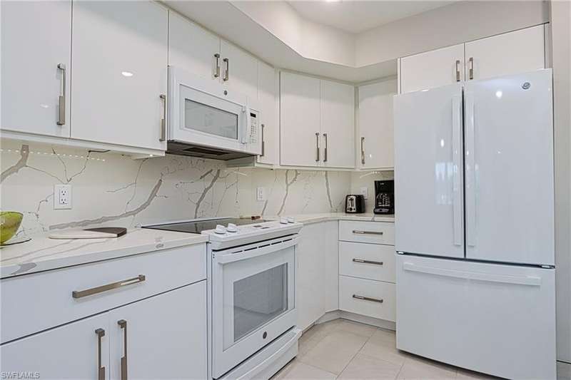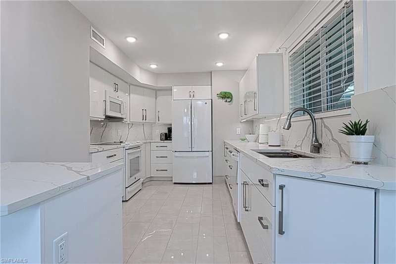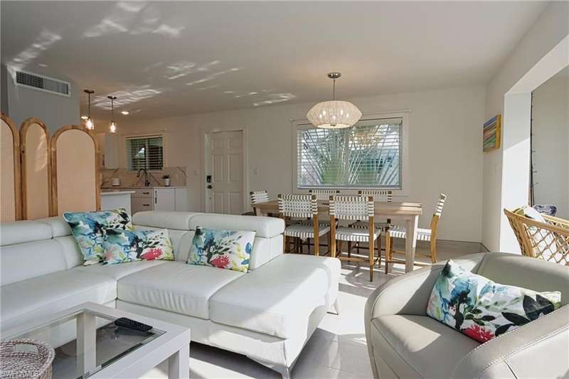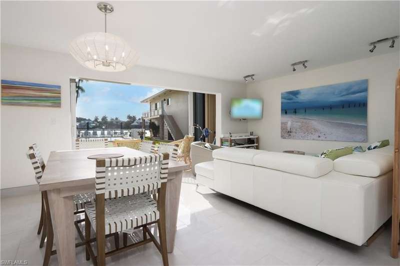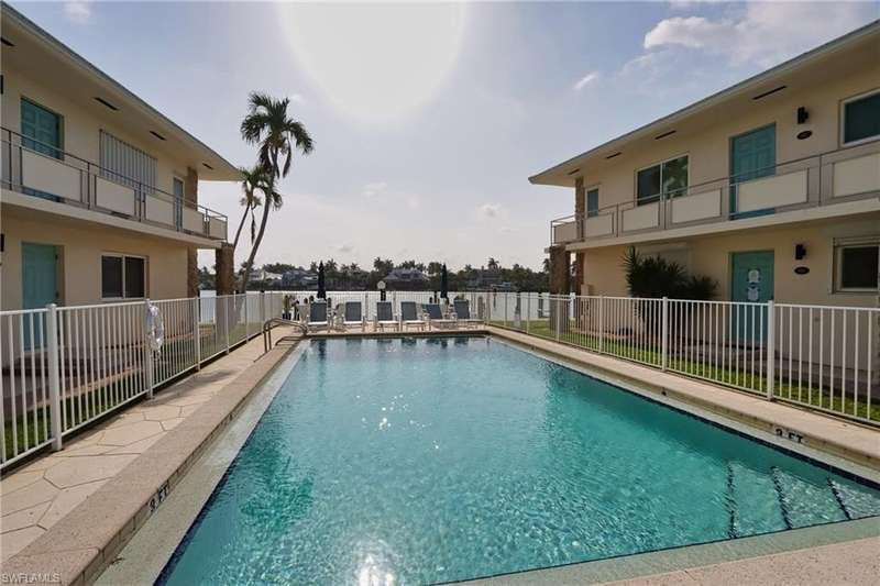 Yacht Harbor Manor, This Amazing waterfront property has been completely renovated and impeccably decorated in elegant classic chic. Guests can walk across the street to the Gulf of Mexico for Sunsets or enjoy Sunrises over the bay from your englassed Lanai. This lovely, light and bright first floor unit on Moorings Bay offers updated kitchen and baths, master bedroom features a King-sized bed, and the guest bedroom has a Queen and a twin bed. Located within a bike ride to dining and shopping at Venetian Village or enjoy a cocktail on the dock or around the pool.
