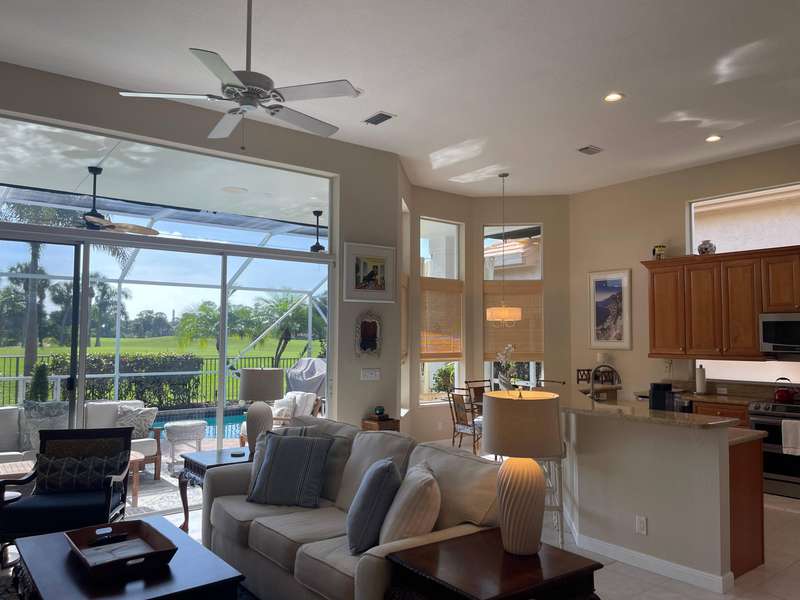 Mediterranean-style home features 3BR/ 4FB, along with screened-in lanai pool and picturesque golf course views. 2 car garage+ golf cart garage. The Ironhorse community is gated with 24-hour security. Rent includes weekly landscaping. Homeowners can join the Ironhorse Golf Club, tennis club and/or community swimming pool for additional fees.