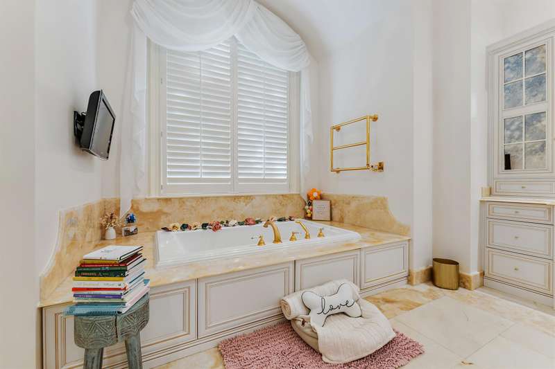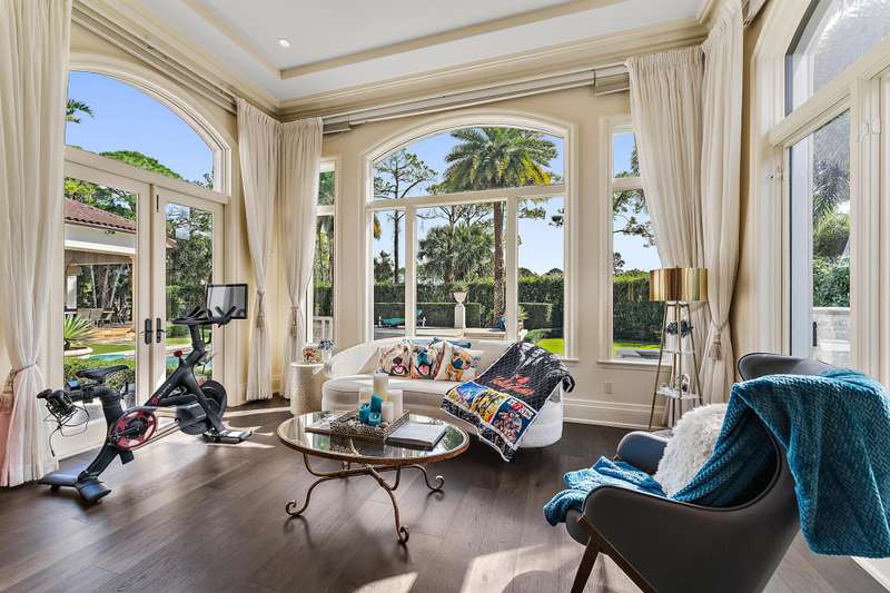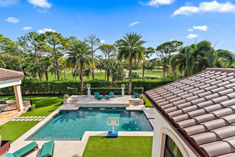 Enjoy the elegance of this custom, over 9,000 square ft estate located in the exclusive Bears Club in Palm Beach Gardens. Featuring five bedrooms, 7.2 bathrooms, 2 - 2 car garages. This spectacular home is situated on a beautiful lot with privacy and a resort-style backyard with outdoor loggia and a fireplace. Recently renovated and new roof. Additional luxuries include a first-floor master suite, 2 magnificent marble master bathrooms, a guest suite, a media room, a club room, a chef's kitchen, a wine bar with a built-in wine fridge, soaring ceilings, impact glass, an elevator, and much more! Beautifully appointed with amenities too numerous to list and ready for the most discerning buyer