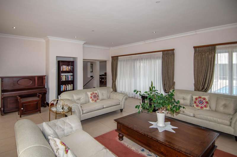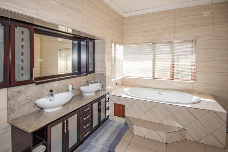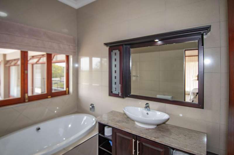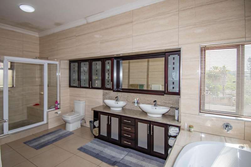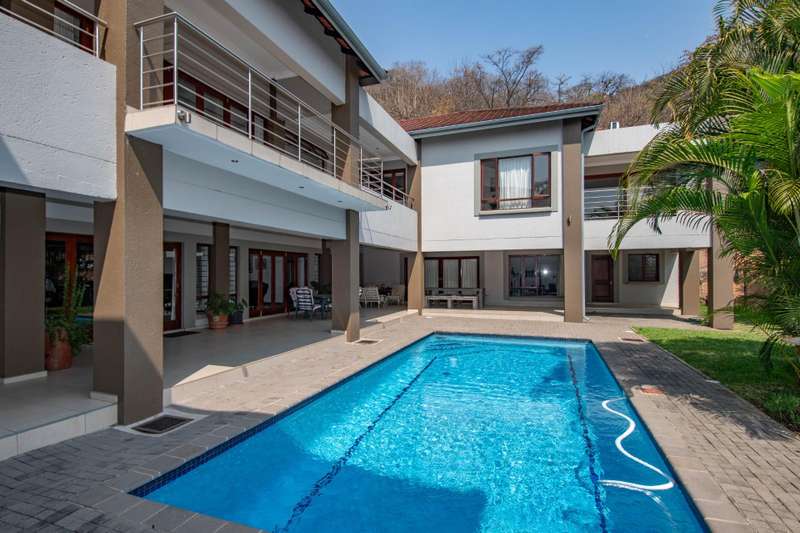 For Sale in Matumi Golf Estate, Nelspruit This three-level residence in Matumi Golf Estate offers 5 en-suite bedrooms, multiple living spaces, and panoramic Lowveld views. ?Çó Ground Floor: 5-car garage, 4 open parking?ÇÖs, 2 storage rooms ?Çó First Floor: Guest suite with full bathroom, open-plan dining and kitchen area with scullery and laundry, TV lounge with bar, entertainment room, guest toilet, and covered patios leading to a pristine pool. ?Çó Second Floor: 4 en-suite bedrooms with private balconies, large cupboards, upstairs lounge, dedicated office, and main suite with walk-in closet and luxury bathroom. Estate Amenities: Championship 18-hole golf course with clubhouse and restaurant, 2 bowling greens, walking and running trails, landscaped gardens, 24/7 security, and an active Homeowners Association.