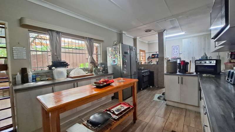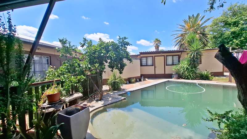 This property offers an excellent investment opportunity, with the potential to convert the space into student accommodation at minimal cost. The main house is spacious, offering three comfortable bedrooms, including a master suite with a full en-suite bathroom. The other two bedrooms share a full bathroom. The open plan living and dining area features a cozy fireplace, perfect for family gatherings. The modern kitchen includes a centre island, gas hob, and electric oven. The property also boasts two separate offices, complete with their own entrance and a guest toilet, ideal for those working from home or running a business. The four flatlets are an added bonus: • 1st Flatlet: Spacious living and dining area, kitchen, two bedrooms, and a full bathroom. • 2nd Flatlet: Bachelor’s flat with kitchenette and full bathroom. • 3rd Flatlet: Bachelor’s flat with kitchenette and bathroom (shower, basin, and toilet). • 4th Flatlet: Bachelor’s flat with kitchenette and bathroom (shower, basin, and toilet). The property features a spacious patio with a built-in braai, ideal for outdoor entertainment. Additional amenities include an outside toilet, ample parking with 4 garages and 2 carports, and a borehole for household and garden use. The property also includes a 5,000-liter JoJo tank with a pressure pump, as well as a 750-liter JoJo tank for rainwater collection. For convenience, the property uses prepaid water and electricity, ensuring control over utility costs.