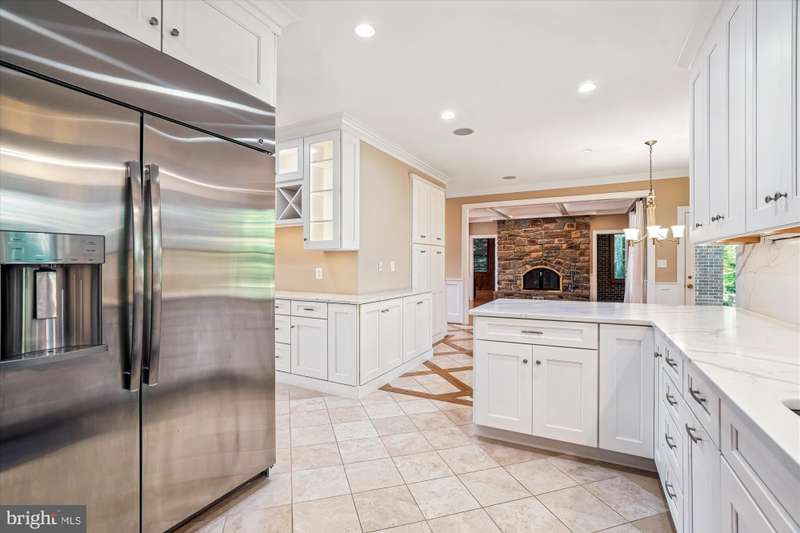 Welcome to 8849 Tuckerman Lane! Experience timeless elegance, quality craftsmanship, and modern comfort in this exceptional all-brick custom home. Nestled on a beautifully landscaped lot, this residence offers luxurious living spaces inside and out. Step into a grand two-story foyer with natural stone tile that sets the tone for this sophisticated home. The formal dining room flows seamlessly into a butler's pantry and a gourmet kitchen featuring ceramic tile flooring, quartz countertops and backsplash, and top-of-the-line appliances, including a Wolf induction cooktop. A sunny breakfast area opens to a spacious family room, highlighted by a stone fireplace, custom built-ins, surround sound, and gleaming hardwood floors. A large custom oak-paneled library offers a warm retreat with extensive built-ins and hardwood flooring, while the inviting sunroom with flagstone flooring brings the outdoors in. Additional conveniences on this level include a powder room and a well-designed mudroom with built-in bench and cubbies. The upper level hosts four spacious bedrooms, all with hardwood flooring, and three full bathrooms. The luxurious primary suite features a fireplace, sitting area, custom walk-in closet with built-ins, a make up counter, a private balcony, and an adjoining exercise/office space a mirrored wall and rubber flooring. The primary bath includes a large jetted tub, separate shower, dual sinks, and natural stone tile. A well-appointed laundry room with granite counters, cabinetry, a sink, ceramic tile flooring, built-in ironing board, and washer/dryer adds convenience to this level. The walk-out lower level offers direct garage access, a lit staircase, a custom brick wall with fireplace, a built-in wet bar with sink, a large storage room, a bedroom, and a full bathroom with two sinks-ideal for guests or extended family. Outdoor and garage features include an expansive 750 sq. ft. Tennessee flagstone patio - perfect for entertaining or relaxing outdoors, a fenced rear yard and attached 3 car garage with a work bench and a large detached two car garage with a storage loft and stairs and an extra wide driveway for ample parking and easy access. Additional Highlights -