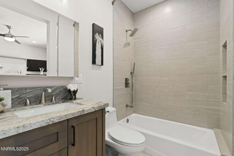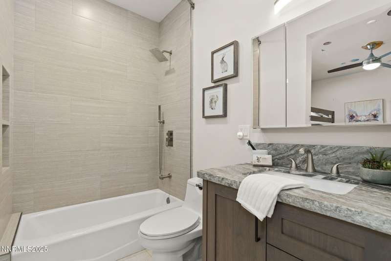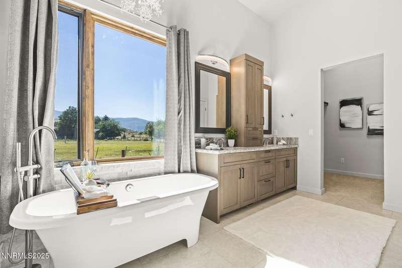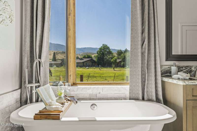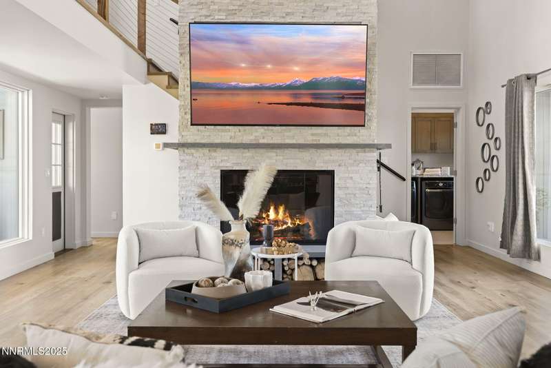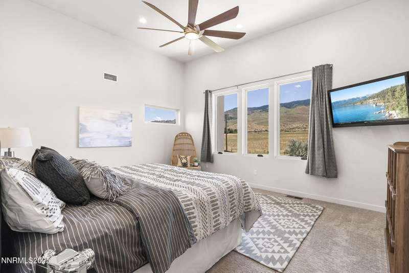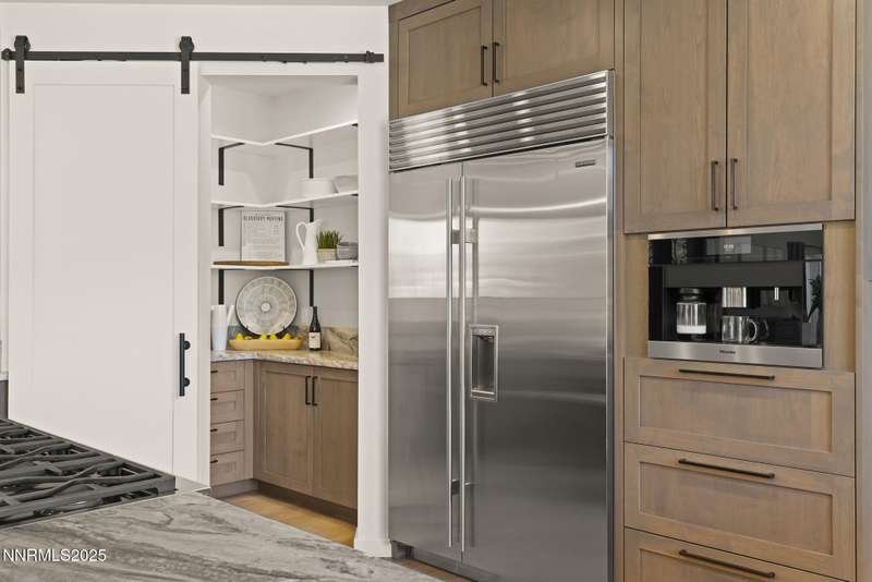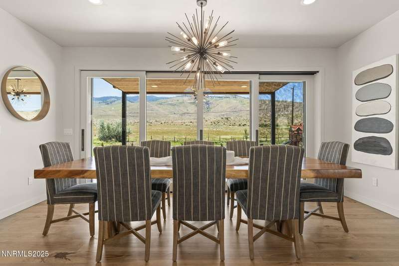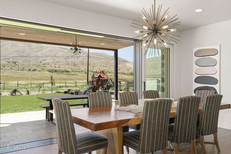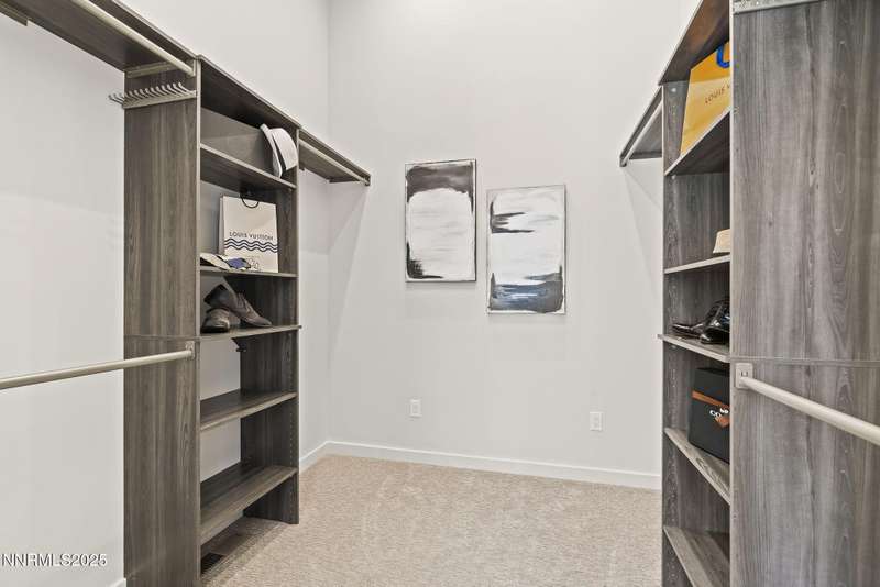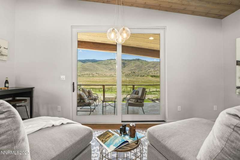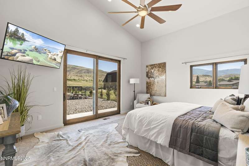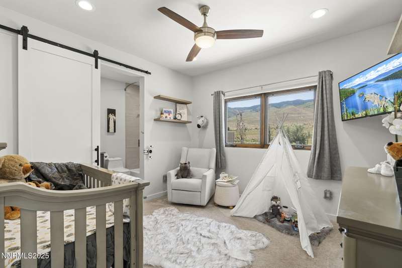 Set on nearly an acre, and less than ten miles from the California border and downtown Reno, 2255 Warrior Lane offers a rare blend of mountain modern architecture, self-sufficient infrastructure, and independence. This 5-bed/5.5-bath, 4,900+ sqft custom estate is a private, high-functioning retreat designed for those who think long-term and live on their terms. Here, there's no HOA—just panoramic views. Built in 2019 and crafted without compromise, the home merges industrial design cues with warm natural materials and layered craftsmanship. Hot-rolled steel and smooth stucco siding meet arched Glulam beams and 7" character-grade hickory floors. Soaring ceilings and oversized windows frame the land, offering sightlines to the Sierra Nevada. The great room anchors the home, with a 15-foot multi-panel lift-and-slide door that blurs the line between indoor comfort and outdoor connection. An oversized gas/wood fireplace clad in marble sits above a hidden basement, accessed through a mechanical bookcase with a 1200-lb magnetic lock. Below: a Dolby Atmos home theater with 3D projection, surround sound, and tiered leather power seating; a wet bar with kegerator; billiards lounge; half bath; and a 240-bottle wine and gun room hidden behind a steel-reinforced door. The layout is designed for separation without isolation—ideal for hosting or housing without giving up privacy. Every bedroom is wired for internet and cable, with ceiling fans and full baths for flexibility, guest comfort, or multi-generational living. Upstairs, a full loft-level living area includes two additional bedrooms, a dual-sink shared bath, a secondary lounge, and a built-in wet bar with access to a travertine cocktail balcony. On the main level are three private ensuite bedrooms, including a dedicated primary wing. The primary suite is a retreat in its own right, with dual walk-in closets and a spa bathroom featuring radiant-heated tile floors, a bidet, dual vanities, a dual steam shower, and a soaking tub. The kitchen is equipped with a built-in 48" Sub-Zero fridge, Sub-Zero wine tower, three Miele ovens (convection, steam, and speed), 8-burner range with retractable downdraft, dual Bosch dishwashers, a Miele coffee system with pull-out shelf, and a pantry with appliance garage and pull-out organizers. A massive full-slab island of chiseled-edge fantasy brown marble offers seating, prep space, and a visual focal point. A folding pass-through window opens to the outdoor kitchen with a DCS rotisserie grill, marble-topped prep station, and full outdoor setup with sink and storage. Outside, 1,700 sqft of covered Turkish travertine terraces connect beautifully landscaped lawns, an 8-person hot tub, and a large commercial-grade play structure. There's ample room for horses or chickens, and wildlife sightings that include hawks, deer, coyotes, the occasional bear, and yes—even a black-footed ferret. The 1,932 sqft pass-through garage includes five bays, a 41-foot RV stall with hookups, and 14-foot doors. A separate 320 sqft finished container workshop offers dual roll-up doors, commercial cabinets, and rubber flooring for clean, secure work or storage space. There's also a built-in ice melt system, smart garage doors, a hot/cold car washing faucet, and 50-amp/30-amp outlets ready for tools, toys, or trades. Designed for resilience as much as beauty, the home includes a 22KW Generac backup generator, 5-zone HVAC with smart thermostats, engineered septic, 300-amp service, triple-filtered well water with carbon and UV purification, recirculating hot water, three sump pumps, central vacuum, integrated smoke and CO detectors, and wired security cameras throughout. Sierra Pacific windows and doors, tight-taped drywall, and spray foam insulation keep the home peaceful, efficient, and grounded in function. This custom estate is a rare convergence of craftsmanship, privacy, and possibility. If you're done compromising—on space, quality, or how you want to live—Warrior is for you.