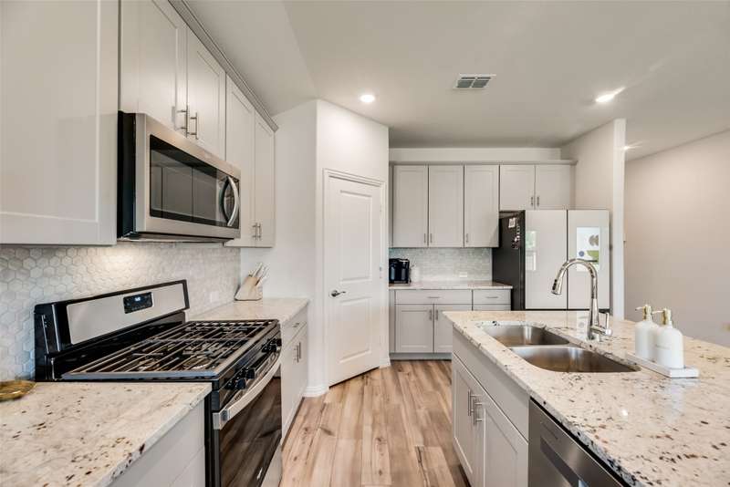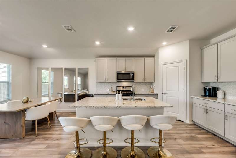 Beautiful 2022-Built Energy-Efficient Smart Home in Kings Ridge that is move in ready! Welcome to the Greenville plan a thoughtfully designed, energy-efficient home built for modern living. The spacious kitchen features light gray tall cabinets, granite countertops, and a large island that opens seamlessly to the living area, perfect for entertaining or keeping an eye on the action while you cook. Stylish EVP flooring and multi-tone carpet add a contemporary touch throughout the home. Enjoy an active lifestyle with North Lakes Park and the nearby recreation center just minutes away. Located in highly rated Denton ISD, students have walkability to the brand-new high school right across the street! New Reeves Elementary across the way that just opened in August of 2025! Kings Ridge offers unbeatable access to shopping, dining, and major employment centers. Built with advanced energy-efficient features, this home helps you live a healthier, quieter lifestyle while saving thousands on utility bills.