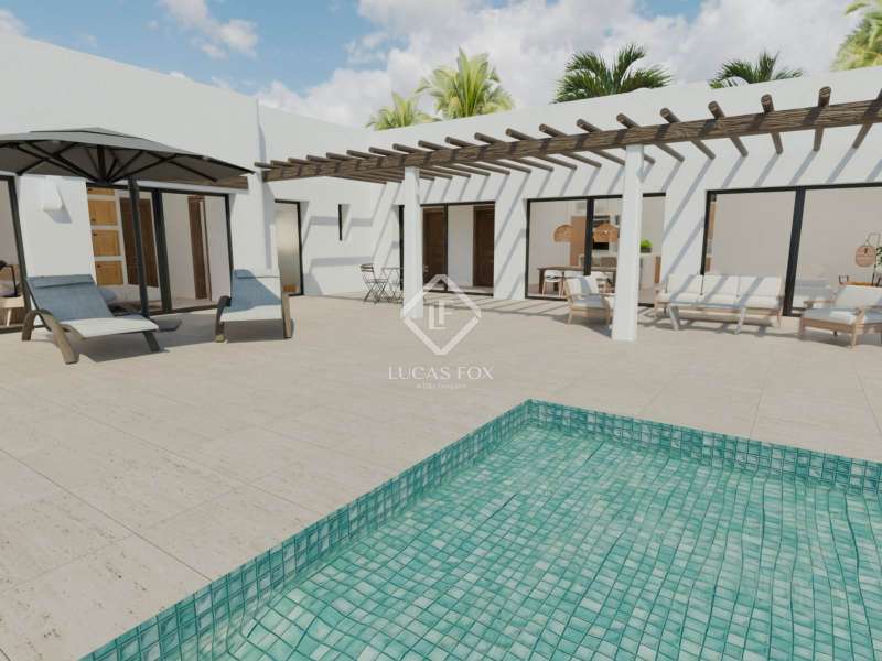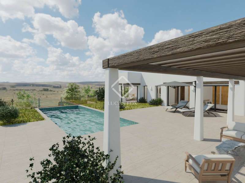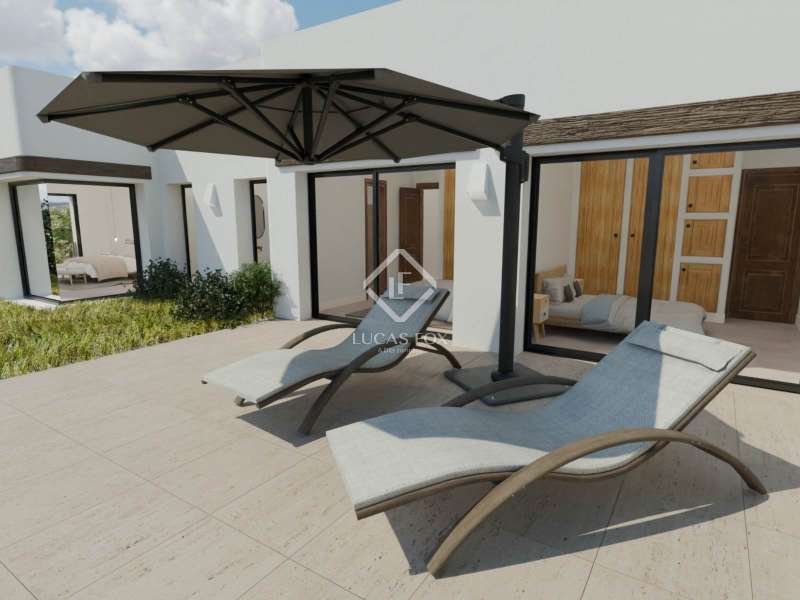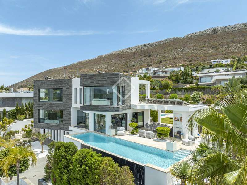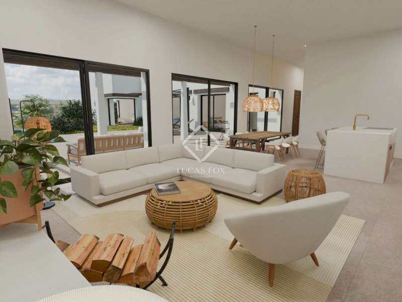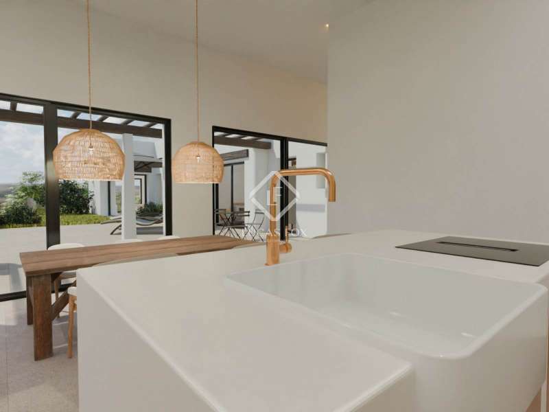 Elegant luxury villa under construction in 2025, for sale on the sunny southern slopes of Montgó, in Jávea. We present this modern villa, located in the sought-after area of Montgó, within the exclusive El Garroferal urbanization. This high-end property is set on a large plot, just 3 km from the historic center of Jávea, thus offering a perfect balance between tranquility and proximity to amenities. From the villa and its terraces, you will enjoy spectacular panoramic views of the valley and the mountains to the south. To the north, the landscape is dominated by the imposing silhouette of the Montgó Natural Park. Modern and functional layout The ground floor accommodates a spacious and bright living-dining room, opening onto a contemporary Ibizan-style kitchen. Thanks to the large bay windows, the living areas open onto a spacious sunny terrace, equipped with a pergola, and a private south-facing swimming pool, ideal for enjoying the Mediterranean climate all year round. This level also includes three bedrooms with wardrobes and private bathrooms, a guest toilet, and a garage with direct access to the house. An independent apartment on the garden level On the garden level there is a comfortable independent apartment, perfect for accommodating guests or as an additional space. It has a living room with an open kitchen, a bedroom with a modern bathroom, and a private terrace with a pergola, guaranteeing privacy and well-being. An ideal investment on the Costa Blanca. Planning permission is expected in summer 2025 (subject to conditions). Combining contemporary design, exclusivity, and a natural environment, this villa represents an ideal opportunity, whether as a primary or secondary residence or as a real estate investment.