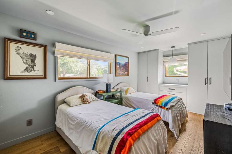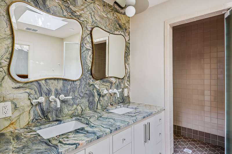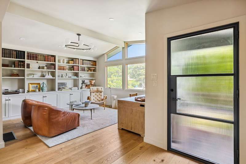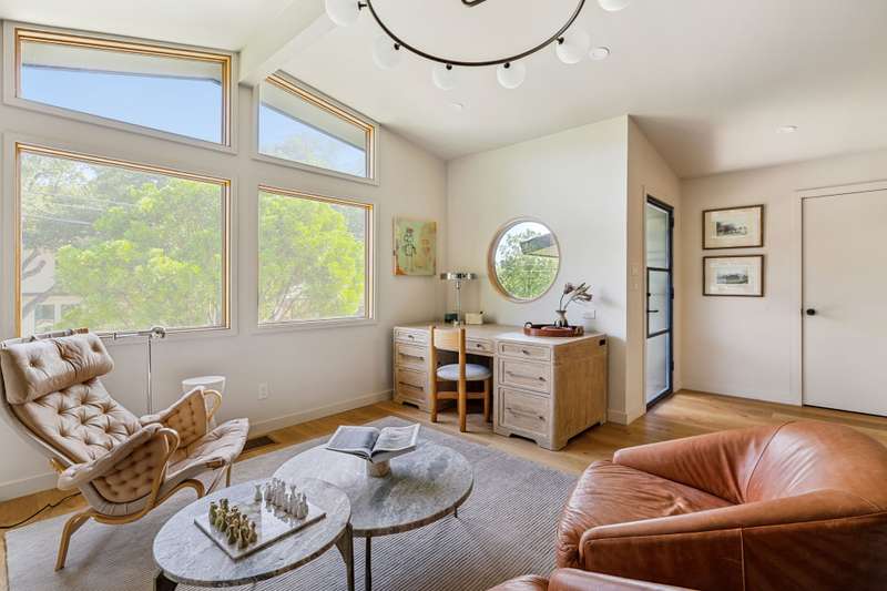 Live in a Designer's Dream Home! Expertly reimagined from the studs up by HGTV designer Kim Wolfe, this one-of-a-kind showpiece blends chic sophistication with everyday comfort. Bathed in natural light and offering tranquil treetop views, each day feels like a retreat in your own private vacation home. Wide-plank white oak floors flow seamlessly throughout, setting the stage for a thoughtfully curated interior. Every bedroom features its own custom bath adorned with handmade tile, designer wallpaper, and premium fixtures. The kitchen is a true statement with striking green marble countertops and backsplash, paired with custom wood cabinetry and fluted wood vent hood for an elevated, organic feel. Built-in banquette seating and clever storage solutions are artfully integrated throughout, offering form and function in every corner. The serene primary suite is a sanctuary unto itself, complete with a California Closets walk-in system, custom desk, and a spa-inspired bath featuring a skylight, double vanity, water closet, and a spacious walk-in shower. Below the main home, a one-car garage with bonus storage adds convenience, while the lush backyard with a concrete patio offers the ideal setting for peaceful relaxation or stylish entertaining. Located one block from Woodridge Elementary (AHISD) on a quiet, dead-end street. - 10/4/2025 3:16:48 AM