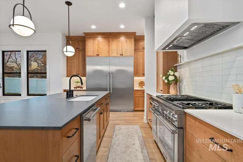 Discover unparalleled custom design by Cook Brothers Construction in the exclusive Shingle Creek Trail Estates! Situated in the heart of Eagle, Idaho, this stunning new community offers immediate access to the Treasure Valley's best- from vibrant downtown dining and local shops to incredible outdoor adventures and the scenic greenbelt. This magnificent two-story home is a true masterpiece of luxury and convenience. The open-concept main floor is designed for grand living, featuring a great room with soaring vaulted and beamed ceilings anchored by a grand stone fireplace—a perfect focal point for cozy gatherings. The gourmet kitchen is a chef's dream, boasting high-end Thermador appliances, a massive island, a spacious dining area, and a dedicated, large butler's pantry for effortless entertaining. The ultimate retreat awaits on the main floor in the primary suite, which features a spa-like bathroom and a generous walk-in closet. Upstairs, a second ensuite offers a private sanctuary for guests or family. Outdoor living is exceptional with an amazing covered back patio for BBQs and entertaining, all on a .31 acre sized lot complete with an attached RV Bay. With only 9 homesites available in this community, this is your rare opportunity to secure a custom luxury home in a prime Eagle location!