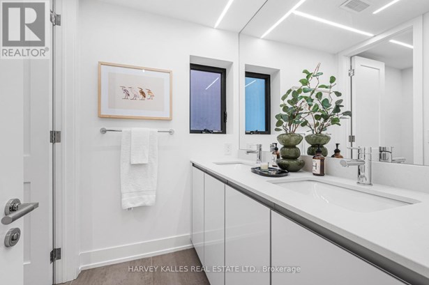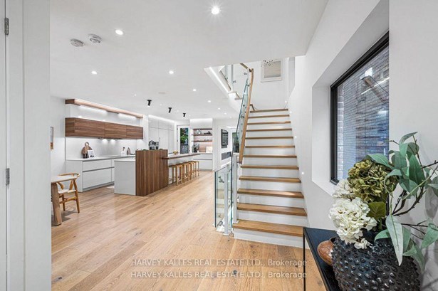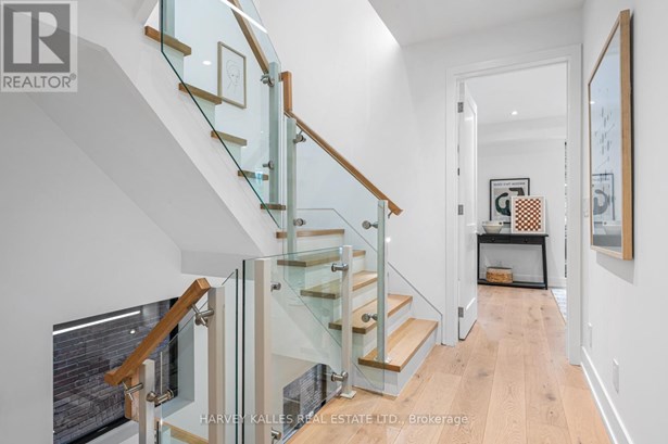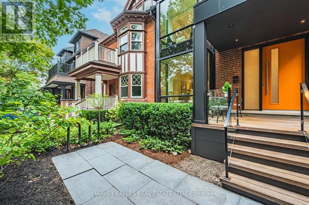 Located just steps from Bloor Street on one of the most desirable blocks in the Annex, this exquisite home is filled with nearly 3,800 Sq Ft of elevated, livable elegance. From the moment you enter, you're drawn through thoughtfully designed spaces with an architectural staircase winding through 4 levels. The open-concept main floor flows perfectly for both memorable entertaining & intimate gatherings with light that pours in from floor-to-ceiling windows. A culinary paradise in the sleek kitchen boasts integrated appliances, smooth countertops and a mix of high-gloss cabinetry & exquisite custom millwork. A warm, inviting sitting room beckons viewing parties with the TV feature wall & contemporary gas fireplace, illuminated by recessed lighting. Take a leisurely promenade via sliding doors to the newly-built deck with gas connection & garden terrace with fire table. Generous for central Toronto, there's tremendous potential in the verdant backyard. At the front of the 2nd level, a large suite features its own balcony & ensuite bath. There's no need to settle any sibling rivalries over who gets the best room with two delightful bedrooms that share a bathroom w/ double sinks; perfect for busy mornings. A hallway closet with rough-in for laundry offers added convenience to this family-friendly layout. The entire 3rd floor is dedicated to the serene Primary with 2 organized walk-in closets and a spa-inspired ensuite with heated floors, freestanding tub & separate WC for added privacy. Step out onto the oversized deck to take in leafy, panoramic views while unwinding in style. The fully finished lower level presents space for family activities, a home gym, plus a 5th bedroom & full bath. This turn-key home is replete with upgrades like built-in speakers & discreet switch-controlled window coverings in all of the principal rooms. Discover the best of the city by foot/bike with nearby parks, schools, world-class shopping, dining, museums & effortless access to the subway.