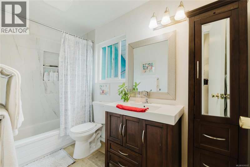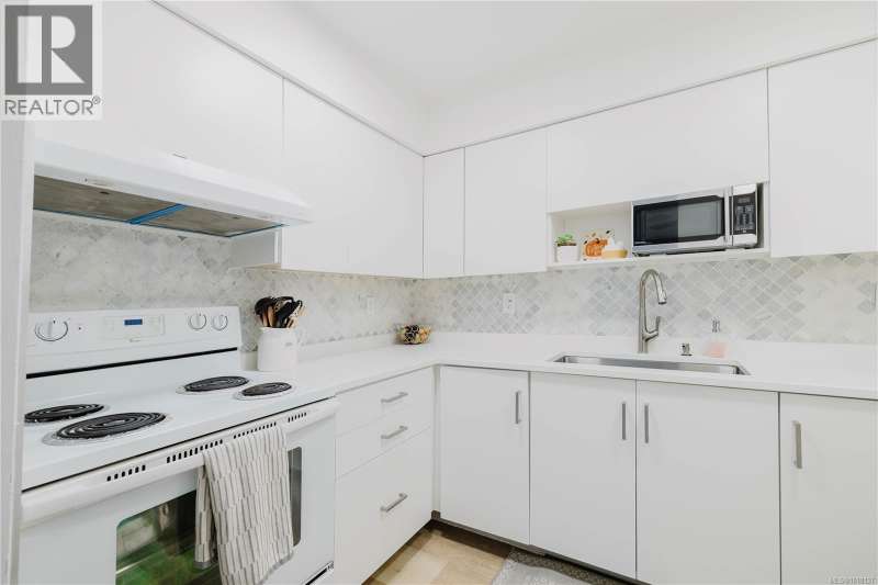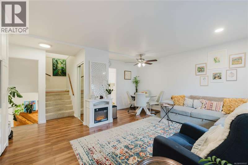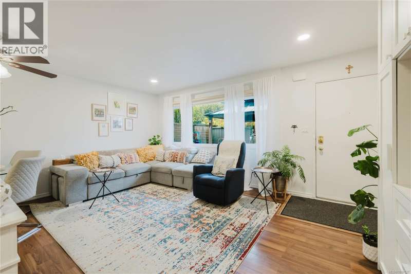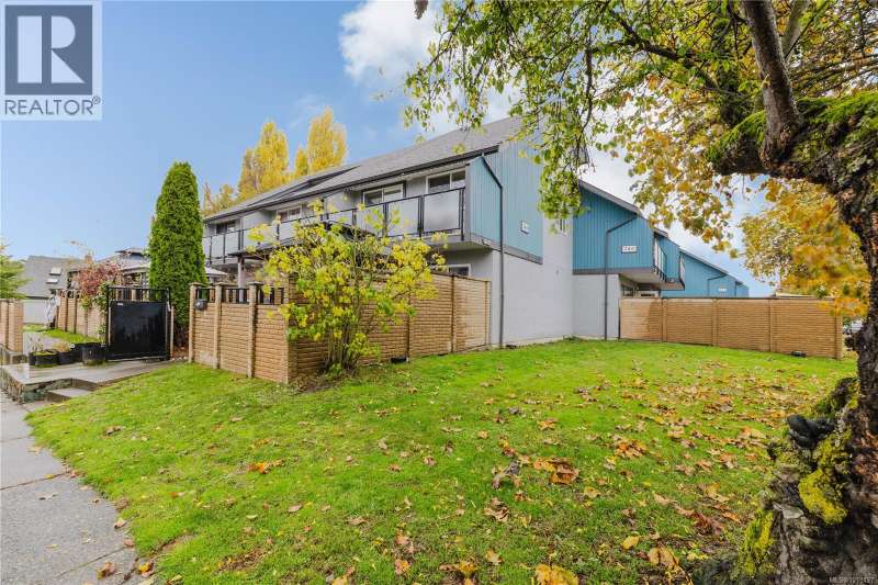 Welcome Home, to this spacious and updated 3 Bedroom (Plus Home Office) & 2 full bathroom END-UNIT townhome with a fully fenced walk-out patio in the desirable Vic West neighborhood. This spacious home includes more than 1,500 square feet of living space, and over 400 square feet more of outdoor balcony/patio space. Many recent updates including a brand New Kitchen with quartz counters, marble backsplash and shaker cabinets, updated main bathroom, fresh paint, new recessed lighting and custom built-in cabinet in the main living room. Conveniently located between Esquimalt and Downtown Victoria: walking distance to so many nearby amenities including grocery stores, restaurants, parks, schools, The Flying Squirrel and the Galloping Goose Trail. Large separate laundry room adjacent to the primary bedroom includes storage for all of your linens and more. The west facing patio is fully fenced and large enough to entertain the whole family. Well run strata pets and rentals are welcome. (id:58403)