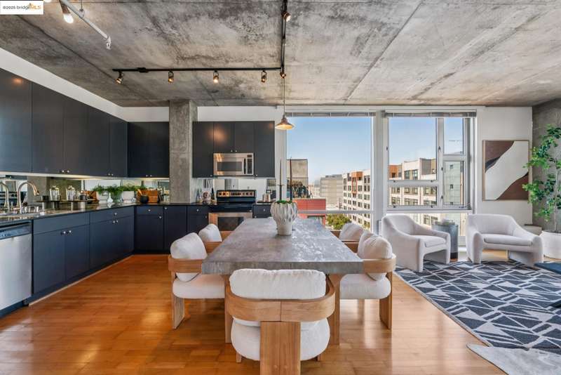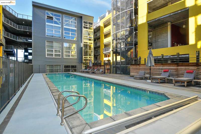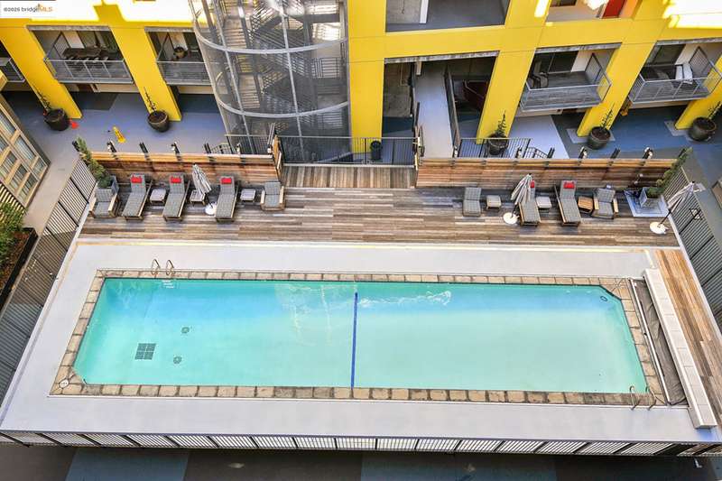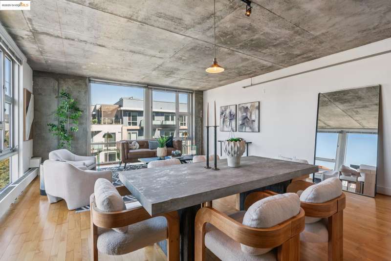 Fabulous luxury corner condo on the 8th floor with amazing urban vibes. Super modern interior with high concrete ceilings and floor to ceiling windows on two sides of the building, with cool city views. The Sierra is a full service building with 24 hr. front desk/security featuring luxury amenities such as pool, sauna, a serious-workout gym, and a party room with billiard table. Bart, Ferry, Amtrak, and freeway are all nearby, for easy commute. The super modern interior is sunny with high ceiling and open, perfect for the urban lifestyle.