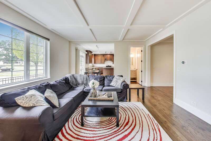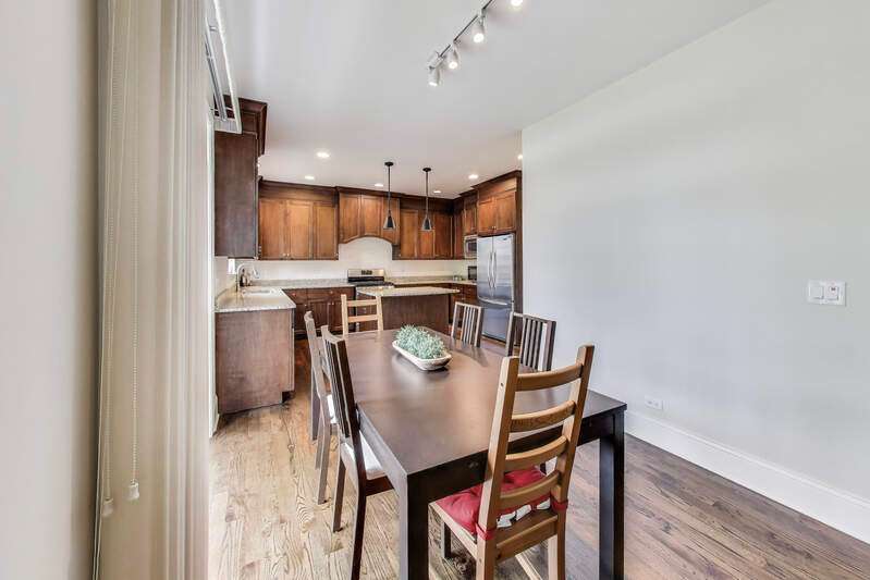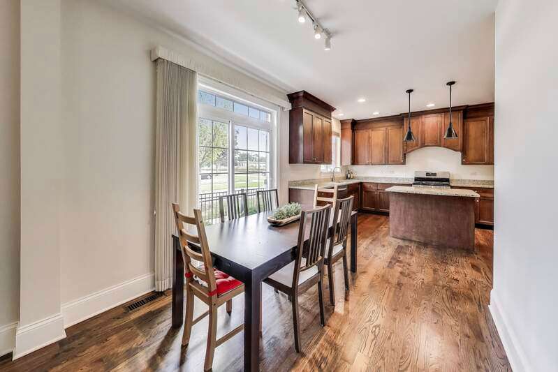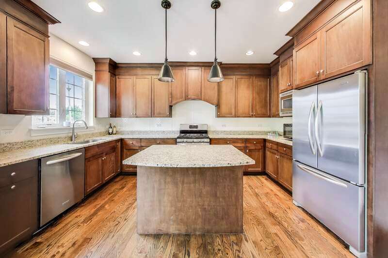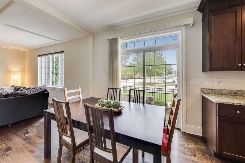 Sought after 3-bedroom, 2.2-bath townhome offering two stories of gracious living space plus a fully finished basement. This stunning and spacious townhome ideally located just a short walk to both the vibrant uptown Elmhurst and convenient train station. This residence boasts a bright and open floor plan with stylish finishes throughout. The expansive living room features rich hardwood flooring, a custom tray ceiling, and a sleek entertainment wall perfect for modern living. Large windows flood the space with natural light, creating a warm and inviting atmosphere for relaxing or entertaining. The gourmet kitchen is outfitted with granite countertops, stainless steel appliances, a center island with pendant lighting, and abundant cabinet space in warm wood tones. The adjacent dining area enjoys picturesque views through sliding doors to side patio, ideal for everyday meals or hosting guests. A private office with fireplace and half bath complete the first floor. The second floor boasts a spacious primary suite with a spa-like bath, two additional bedrooms, full bath and the convenience of 2nd floor laundry. The warm and cozy lower level offers the ideal space for a family room, home office, gym, or guest area with a full bath and loads of storage. New AC and hot water heater. Private fenced side patio located off kitchen. This move-in-ready home combines style, comfort, and unbeatable convenience. Whether you're commuting or enjoying local shops, restaurants, and parks-this is the one you've been waiting for.