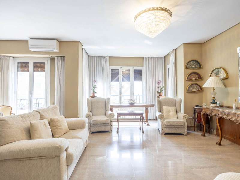 Lucas Fox presents this magnificent property located on the fifth floor of a stately building, in one of the most privileged areas of Valencia, just a few meters from the Town Hall Square and the Central Market. The property stands out for its spaciousness, light, and elegant classic finishes. Its high ceilings with original moldings and marble floors throughout lend a unique and distinguished character to each space. It features a spacious dining room living room with a balcony, a spacious, stately entrance hall , five generous bedrooms, and two complete bathrooms. The fully equipped kitchen, with plenty of storage space, also has direct access to the service entrance. As an added value, the property offers an optional parking space in a parking lot less than 50 meters from the building, ensuring maximum convenience in the centre of the city. A perfect property for those seeking elegance, spaciousness, and an unbeatable location in Valencia.