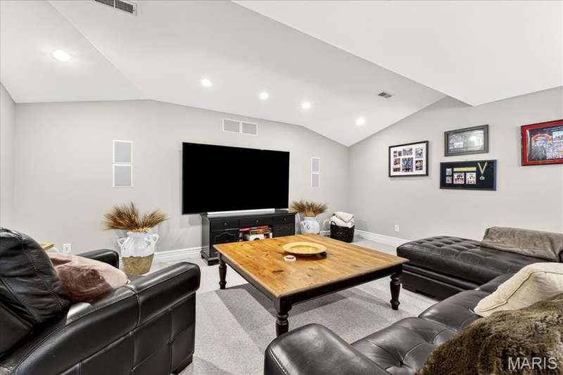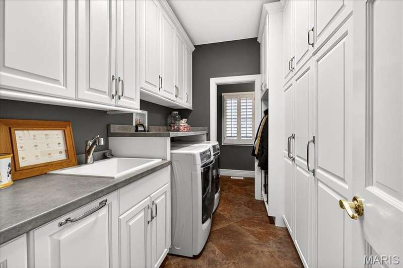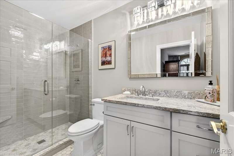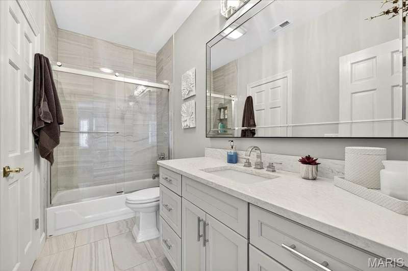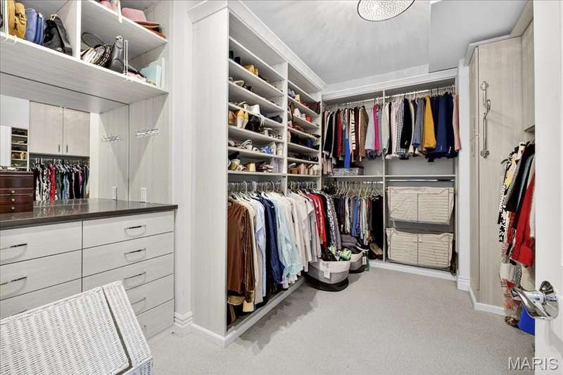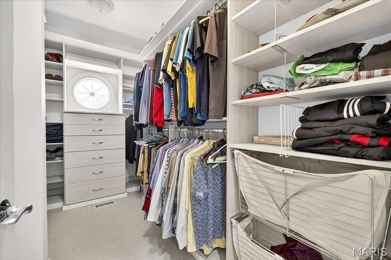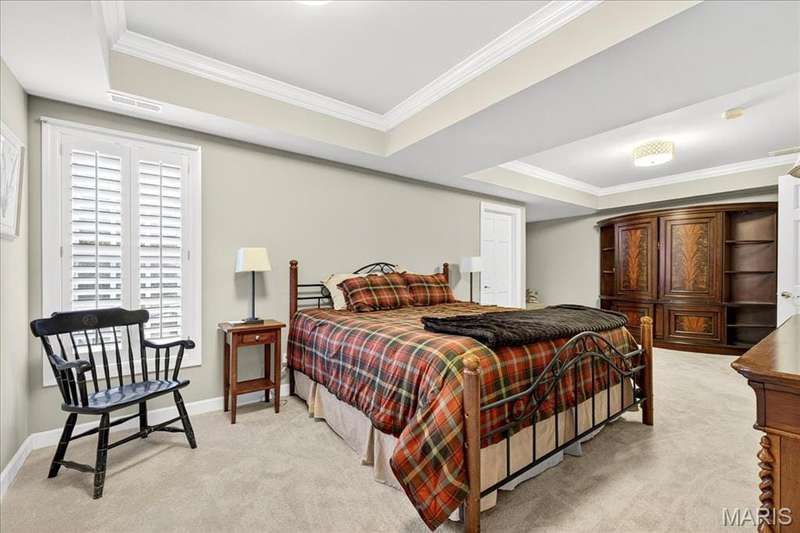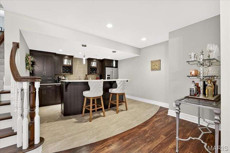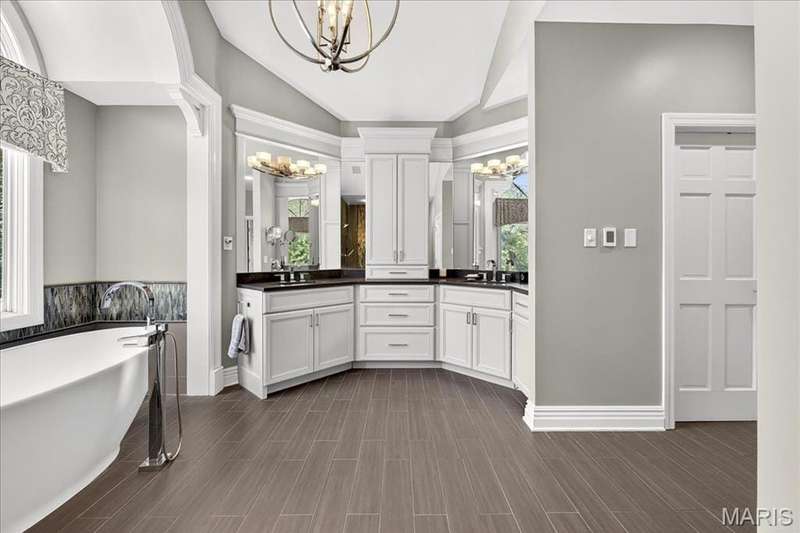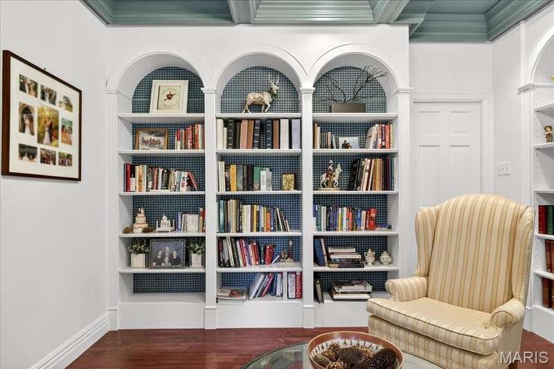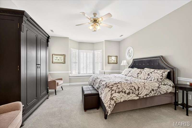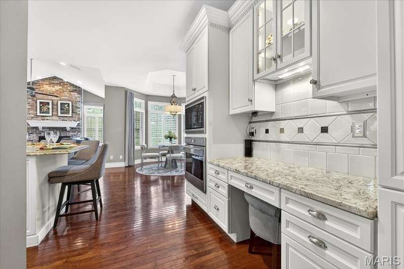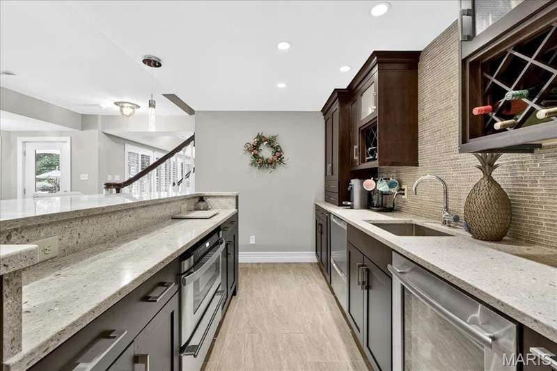This stunning Frontenac estate offers timeless elegance and resort-style living on nearly an acre. A welcoming brick front porch and circle drive lead into a light-filled interior with high ceilings and wood floors throughout the main level. The two-story living room features dramatic floor-to-ceiling windows with serene views of your own private backyard oasis. The updated chef's kitchen opens to a cozy hearth room, creating the perfect setting for both entertaining and everyday living. The main-floor primary suite boasts dual walk-in closets, a spa inspired bath, and direct views to the expansive back patio overlooking the pool, vibrant landscaping, and the private, wooded backdrop beyond. The finished walkout lower level offers a full wet bar, spacious family room with gorgeous fireplace, two ensuite bedrooms, and seamless access to outdoor living. Extensive storage space and full size LL laundry. Complete with a 4-car garage and exceptional spaces inside and out, this home perfectly blends comfort, sophistication, and privacy.