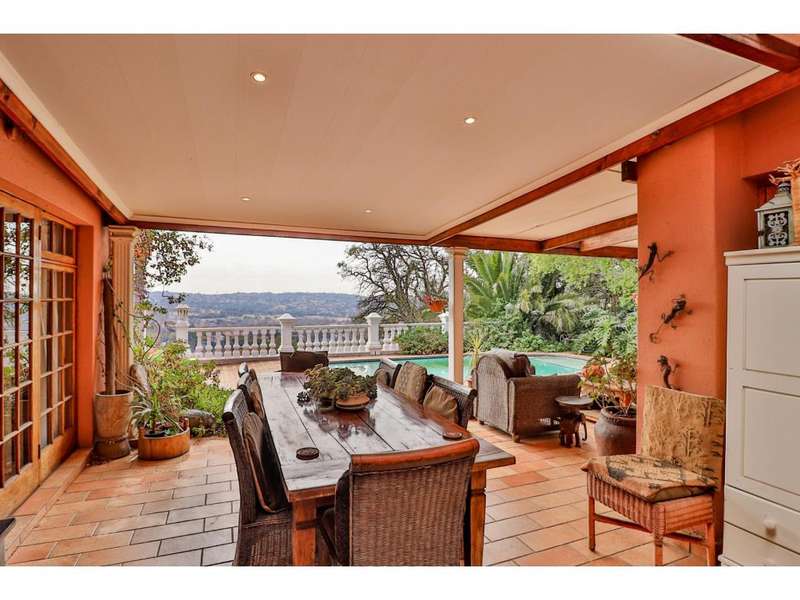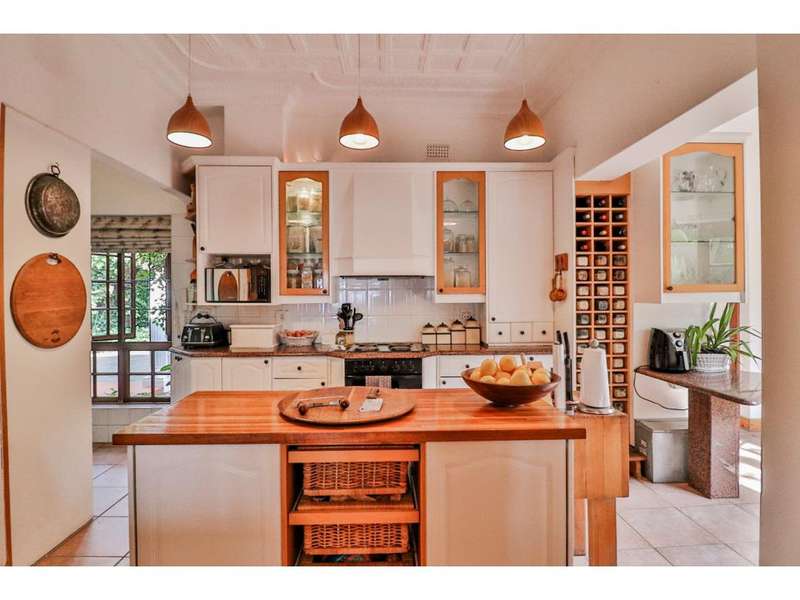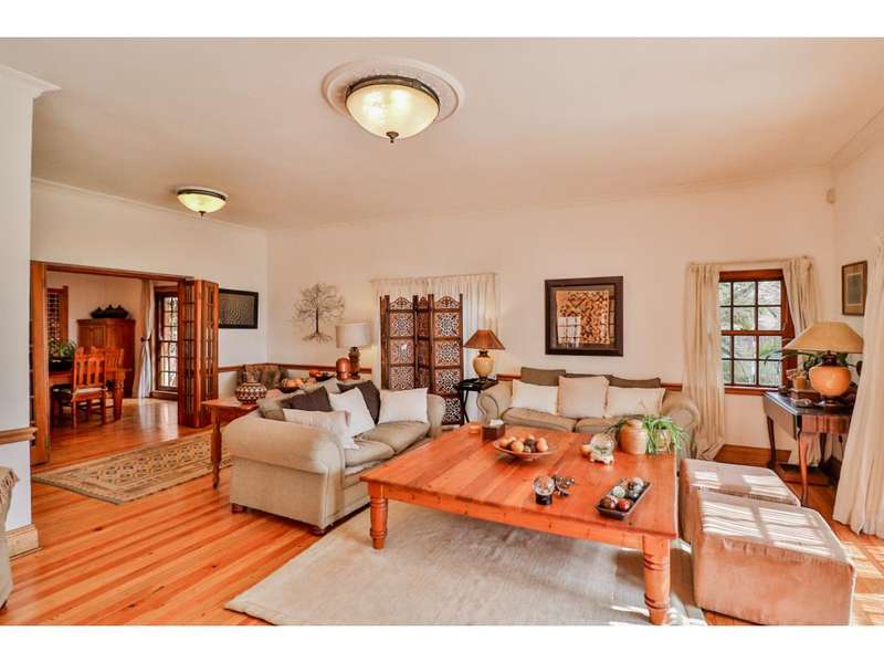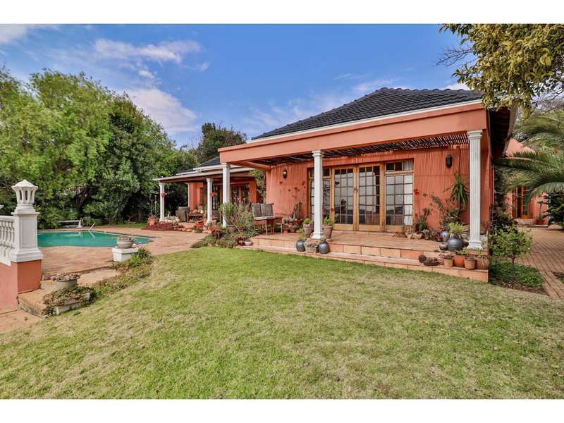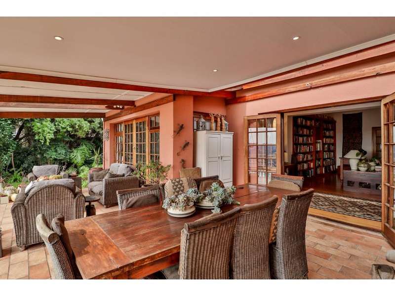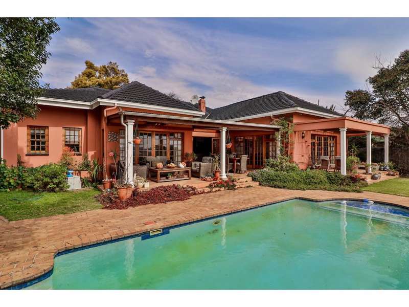 FOREVER HOME ON FIVE STANDS WITH BREATHTAKING VIEWS This spectacular home, on a panoramic viewsite of five stands in sought after Highland Road, could be your forever home. Every room in the main house opens onto the garden through wooden French doors, flooding the home year-round with sunshine. And every room has beautifully restored, original Oregon pine floors, door frames and doors with brass fittings, some with stained glass, most with pressed steel ceilings. All the window frames are wood, some with original sash windows. The living areas are open plan, with the family room opening on one side to a covered verandah that overlooks the pool, and on the other to a sheltered courtyard with built in braai. The dining room seats 10, linked to the custom-fitted kitchen by a centre island. The formal lounge has an original teak fireplace with a working fire for cozy winter evenings. There are three double bedrooms, two with pristine modern en-suite bathrooms. The master bedroom is carpeted with its own pyjama lounge, which opens onto a covered verandah with north facing views over the garden during the day, and twinkling lights as far as the horizon at night. The self-contained cottage has two bedrooms with laminate floors, a full bathroom with shower, a large tiled living room, and a small galley kitchen. It has an interleading door to the main house, which can be closed off as a completely separate unit, making it ideal for teenagers, extended family or tenants. The garden studio, or WFH office, has an entrance , one room and full bathroom, with slate floors and French doors. A timber cabin is fitted out as a gym and adjoins a jacuzzi on a path to the pool. The garden is made for bird lovers, with resident loeries, nesting crested barbets and visiting hoopoes. Unusually for a Kensington viewsite garden, there is a large lawn, perfect for ball games and celebrations. There are more than two dozen majestic trees, with jacarandas on either side of the wooden entrance gate. The extensive paved driveway has six parking spaces for visitor, and four garages with solid timber doors. If you love traditional homes with character , as well as modern conveniences, this big, bright, beautiful property could be your forever home.