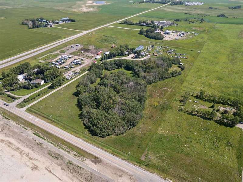20.58 acres located in the growing industrial community of East Balzac. Tons of potential and a great location! Currently zoned R-RUR, Included in the East Balzac ASP (SDA5), with the possibility for industrial & business uses. 2 Large Quonsets included, Larger Quonset 155’ x 56’, zipper lock – galvanized steel, uninsulated. Doors are 14’ high x 20’ wide. Smaller shop 34’ x 50’ heated & insulated. Property includes farm utilities: electrical, gas, septic and well. Great location, with quick access to Dwight McClennan, Metis Trail & Stoney Trail, QE2, Crossiron Drive and the Calgary International Airport.