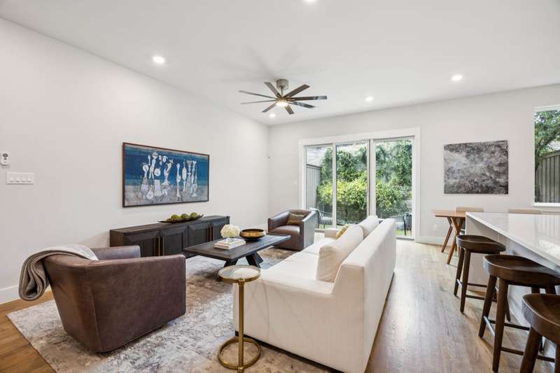 Experience luxury living at its finest in this beautifully designed modern home featuring an open-concept floor plan and impeccably landscaped yard. Thoughtfully curated with numerous upgrades and abundant natural light, this residence showcases high-end finishes throughoutincluding rich wood floors, soaring 10' ceilings, and premium kitchen and bath finish-outs.The open layout is ideal for both everyday living and entertaining, with the kitchen seamlessly flowing into the living and dining areas, then out to a private, turfed patio for effortless indoor-outdoor living.The chef-inspired kitchen is a true showpiece, featuring quartz countertops, ample custom cabinetry, and top-of-the-line KitchenAid appliances. A spacious mudroom, stylish half bath, and double doors leading to the lush backyard complete the inviting first floor.Upstairs, you'll find a versatile bonus space perfect for a media area or home office, along with a luxurious primary suite and two additional bedrooms. The primary retreat is filled with natural light and includes a spa-like en-suite bathroom with dual sinks, generous storage, and a large walk-in closet.Located in The Reserve at Bluffview, a prestigious gated community, residents enjoy access to a one-acre private park, fire pit, picnic area, and scenic trails along the Bachman Creek Greenbelt. With close proximity to Inwood Village, Highland Park Village, Preston Hollow, Love Field, and Central Market, this home offers the ultimate combination of luxury, privacy, and convenience.