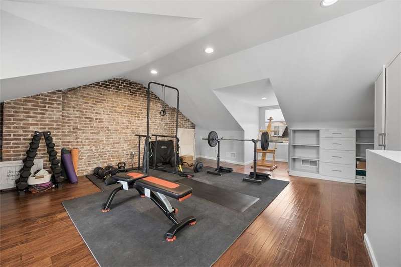 Welcome to 179 46th Street, a beautifully updated home in the heart of Lawrenceville, just steps from top restaurants, shops, and boutiques. This move-in ready property blends charm with modern updates, showcasing hardwood floors, exposed brick, and an open layout. A unique indoor/outdoor garage door creates the ultimate entertaining space, while the sleek kitchen features quartz countertops, stainless steel appliances, and a mudroom with storage. A first-floor half bath adds convenience. Upstairs offers a bedroom with full bath and soaking tub, plus a private primary suite with en-suite bath, walk-in closet, and laundry. The third floor provides a flexible space for a bedroom, office, or gym. Outside, enjoy a grassy yard and rare detached one-car garage. With walkability, thoughtful design, and modern amenities, this Lawrenceville gem is ready to welcome you home.