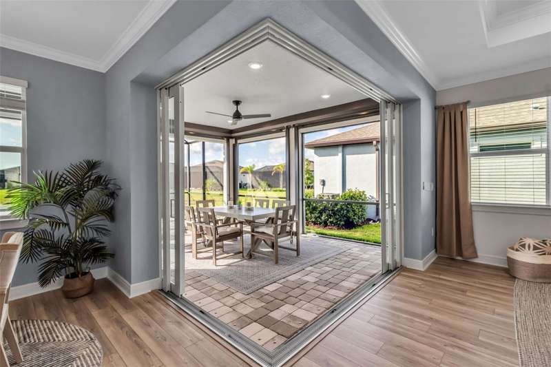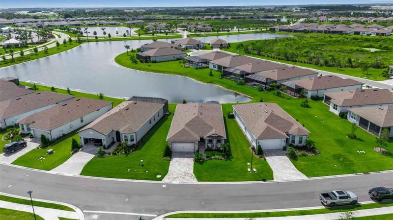 Upgrades Galore in this 3/3 in Parrish!! Welcome to your dream home in the premier 55+ community - Del Webb BayView! This beautifully designed Mystique model offers the upgraded 3 spacious bedrooms, 3 full bathrooms, stone facade, and refined living spaces ideal for both entertaining and everyday comfort. You'll love the gourmet kitchen with granite countertops, modern cabinetry, and stainless-steel appliances. The main living area features an open-concept that flows seamlessly through the zero corner slider into the enclosed porch. The screened lanai with one-touch automatic Storm Smart hurricane shutters is the perfect space for enjoying Florida evenings and breathtaking pond views. Designer furnishings and luxury finishes throughout make the interior feel second to none (fully furnished sale is optional and negotiable). Del Webb's BayView Community Amenities include, resort-style luxury pool with ample lounging areas, state-of-the-art Pickleball courts, tennis courts and activities for active living, and the Sailfish Restaurant - an exclusive on-site dining experience. Grounds also contain a fitness center, clubhouse, walking trails, and a calendar full of social events. This meticulously maintained home is the perfect blend of luxury, convenience, and low-maintenance living in one of Parrish's most desirable active adult communities.