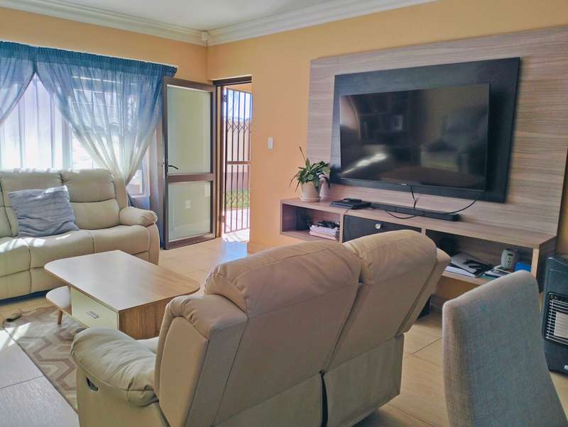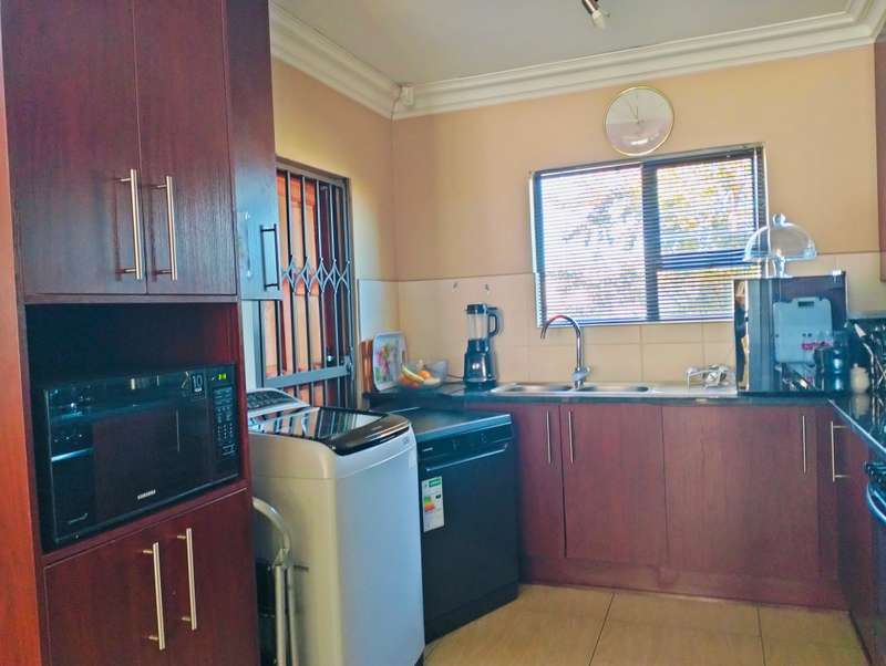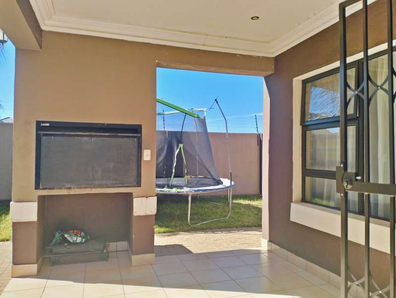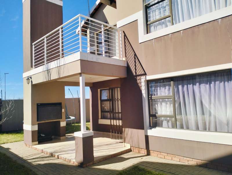 This townhouse in Elbert Heights, Hillside, near Northridge Mall, offers a spacious and modern living experience. It features three generous bedrooms, with two of them boasting ensuite bathrooms. The main bathroom is a highlight, equipped with a shower, bath, basin, and toilet, providing a luxurious retreat. The other two bathrooms each include a shower, toilet, and basin, ensuring comfort and convenience for all residents. The main bedroom is a standout feature, offering a beautiful balcony perfect for relaxing and enjoying the views. The open-plan design seamlessly connects the kitchen, dining, and living areas, creating a welcoming and expansive space for family gatherings and entertaining guests. Outside, the covered braai area with a built-in braai is ideal for outdoor dining and socializing. The property includes a single garage and a large yard, providing ample space for children to play or for gardening enthusiasts. Located in a well-secured and beautiful development, this townhouse combines modern amenities with a prime location near Northridge Mall, making it an excellent choice for comfortable and stylish living.