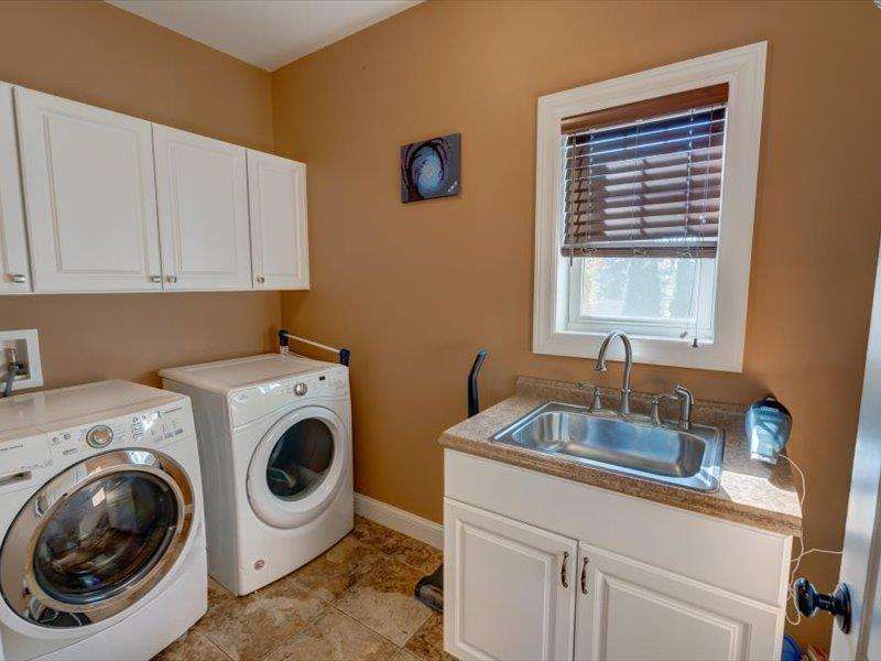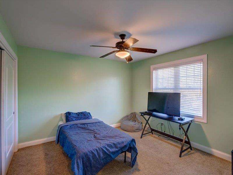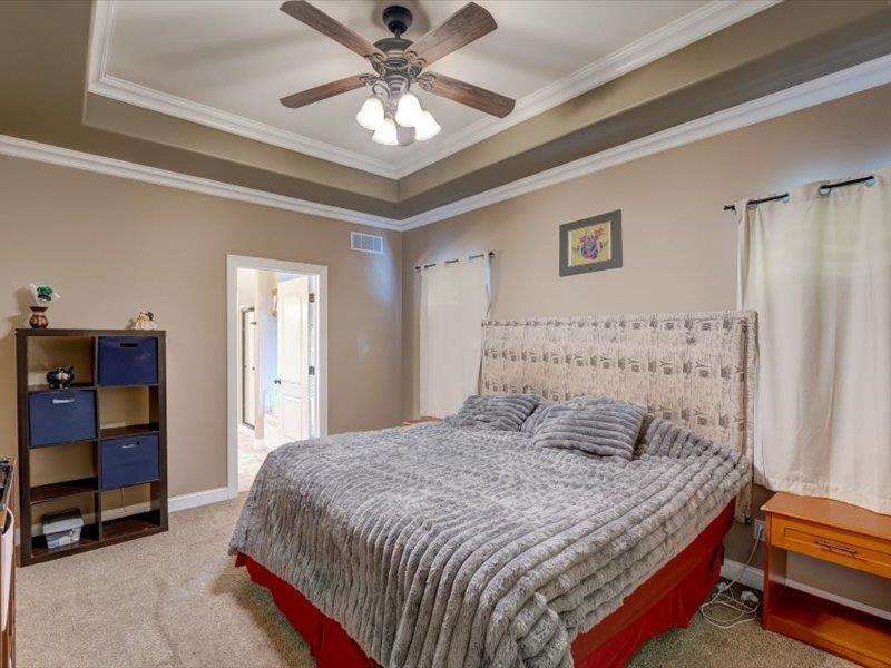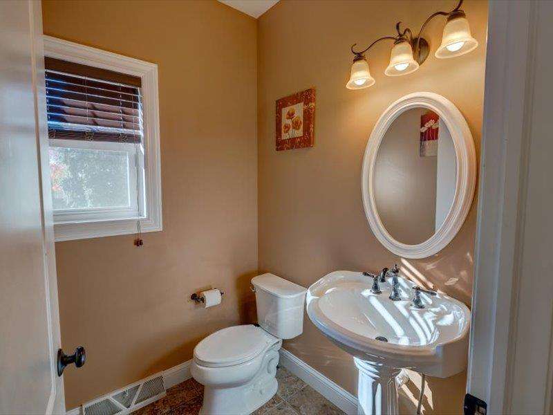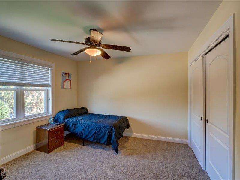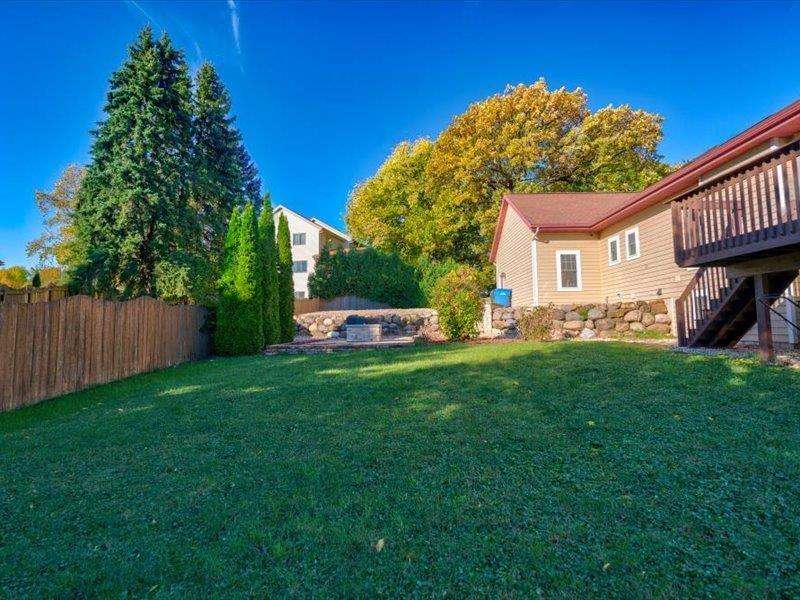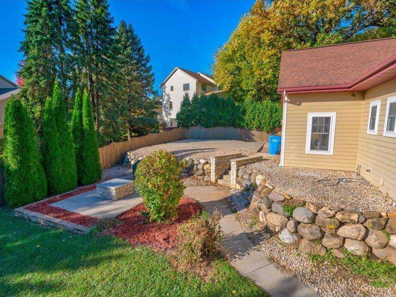 This beautifully maintained and updated home boasts of hardwood floors, 2 dining areas, stone fireplace, vaulted ceilings and a finished basement your whole family will enjoy. The large kitchen offers solid stone counters, a gas stove, and an island & breakfast nook. The primary suite features double vanities, walk-in closet, separate shower & jet tub. Upstairs are 2 bedrooms & a full bath. Downstairs offers a large rec room with wet bar, exterior wall stubbed in for adding a f/p, a 4th bdrm & a full bath. The basement also holds ample storage space and a storm shelter/bonus room with its own ventilation system. The yard offers a deck and patio area. Gas Grill & Firepit included! LP Smart Siding. Walking distance to the library, shops, and more! Bike trail passes in front of house.
