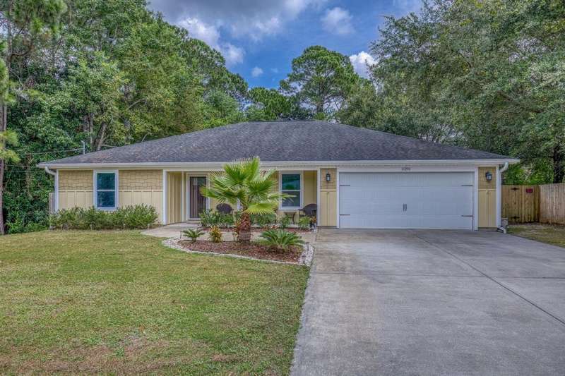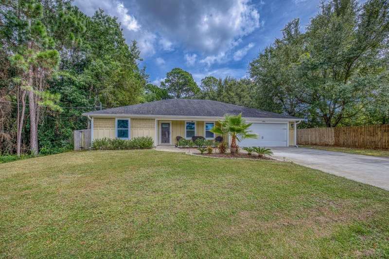 BUYER INCENTIVE AVAILABLE! Welcome to this charming 4-bedroom, 2-bathroom home in Navarre, offering 1,868 sq ft on a spacious .459-acre lot with no HOA. Located just minutes from military bases, this property combines convenience and comfort. The open kitchen features granite countertops, stainless steel appliances, a newer microwave, garbage disposal, oven, and built in wine chiller. The main living areas have durable tile flooring. The main bedroom boasts a tray ceiling and an ensuite bath with double granite vanities. The other bedrooms are in a separate wing for privacy. Outside, enjoy an open back patio and a large grassy yard. A two-car garage provides ample storage. This home also includes a brand-new HVAC (2025). Schedule your showing today! Inside, the open kitchen features granite countertops, stainless steel appliances, a breakfast bar, and an eat-in dining area. The kitchen and main living areas are finished with durable, easy-to-clean tile flooring, perfect for everyday living. The spacious main bedroom boasts a tray ceiling and ensuite bath with granite double vanities and a relaxing tub/shower combo. For added privacy, the additional bedrooms are located in a separate wing of the home and are conveniently situated near the second full bathroom. Outside, you'll find an open back patio and a large grassy yard, ideal for entertaining, gardening, or simply enjoying the Florida sunshine. A two-car garage provides ample parking and storage. With no HOA restrictions, you'll have the freedom to make this property truly your own. This home offers the perfect blend of style, space, and locationschedule your showing today!