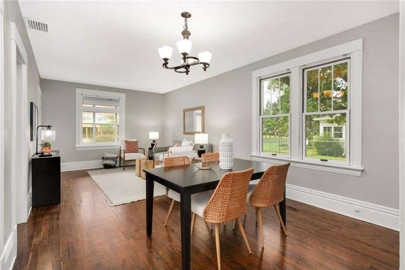 Home features a lovely front porch, updated kitchen and bathroom with hardwood floors on the main level. Two bedrooms - one on the main floor and a large one upstairs. Spacious mudroom area and walk-in closet, which could be turned in a main level laundry room. The 2-car garage is oversized, great for extra storage. Maintenance free siding and Central Air Conditioning. Home situated on a double lot, which is fenced in, perfect for entertaining.