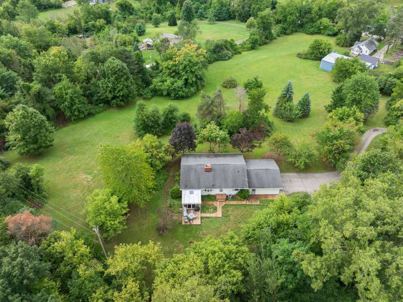 Welcome to this expansive bi-level residence situated on 2.5 acres of softly rolling and private land. If you have been looking for a tranquil getaway while still being close to amenities, this property strikes the ideal balance. Set back from the road and surrounded by nature, you will experience a unique sense of privacy and calm, all just minutes away from shopping, dining, schools, and major roads. As you enter, you will find a versatile floor plan that accommodates various lifestyles. The main level offers a bright and open living and dining area, an ample kitchen ready for your personal touches, and two cozy bedrooms. The lower level reveals additional living space, including a roomy primary suite with a full bath and another room that can be used as a bedroom, home office, or craft area, perfect for modern needs. Outside, the possibilities are endless with the 2.5-acre lot, which features a mix of open areas and mature trees, ideal for gardening, entertaining, or simply appreciating nature. Whether you envision summer gatherings, walking paths, or space to relax, this property has what you need to bring your dreams to life.