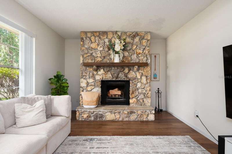 Under contract-accepting backup offers. One or more photo(s) has been virtually staged. Ask about a lender provided RATE BUY-DOWN CREDIT on this home /// Seller may consider buyer concessions if made in an offer /// Welcome to single story living in the sought after Isle of Pines community, located in Orlando’s premier 32832/Lake Nona area! This beautifully updated home sits on a spacious .35 ACRE LOT and offers a rare combination of privacy, modern updates, and true lake-life living – all with the convenience of being just minutes from SR 417 and all that Lake Nona has to offer. MAJOR UPDATES: In 2025 - NEW CARPET was installed in the bedrooms and FRESH PAINT brightened the spaces, giving the home a move-in ready feel. In 2024 - an EPOXY COATED GARAGE FLOOR was added for durability and style, and a NEW SEPTIC DRAINFIELD system was completed for peace of mind. These updates complement the home’s thoughtful remodels and timeless finishes. The charm starts at the COVERED FRONT PORCH and continues inside where the living room features a stone faced WOOD BURNING FIREPLACE, a perfect gathering space with an easy flow into the dining area and kitchen. The UPDATED KITCHEN will impress any home chef with desirable STAINLESS STEEL APPLIANCES, a large ISLAND with bar seating, pot filler above the stove, UPGRADED CABINETRY, and plenty of space for a breakfast nook or casual family room. The SPLIT BEDROOM layout ensures privacy with the PRIMARY SUITE perfectly situated to one side of the home featuring DUAL CLOSETS and a private bath. Bedrooms two and three are on the opposite side and share a full guest bath. TILE and WOOD LAMINATE FLOORS flow through the main living areas for easy maintenance, while the new carpet in the bedrooms adds comfort. Stylish light fixtures, recessed lighting, and ceiling fans enhance every room. Sliding glass doors off the kitchen open onto a SCREENED LANAI and PAVER PATIO beyond, perfect for entertaining or simply relaxing while overlooking the expansive, FULLY FENCED backyard. With so much space outdoors, you will enjoy the freedom to spread out and truly make it your own! Life in Isle of Pines means an OPTIONAL HOA that gives you access to a private community park, pavilion, beach, and BOAT RAMP, with LAKE and DOCK access to beautiful LAKE MARY JANE. This close-knit neighborhood is known for its friendly vibe and fun community events, offering the best of both worlds – peaceful living with all the dining, shopping, and entertainment of Lake Nona just minutes away. If you have been searching for a move-in ready single-story home with character, updates, and a sprawling lot, this is the one! Schedule your showing today and start enjoying the Isle of Pines lifestyle!