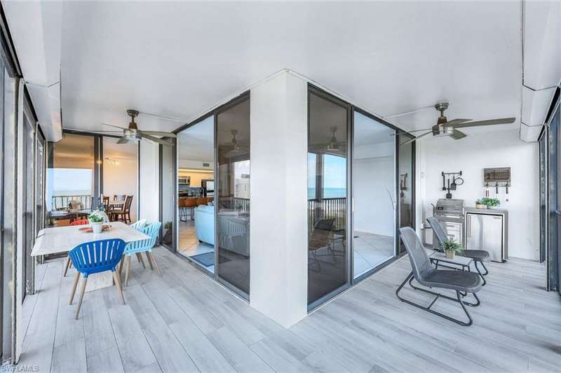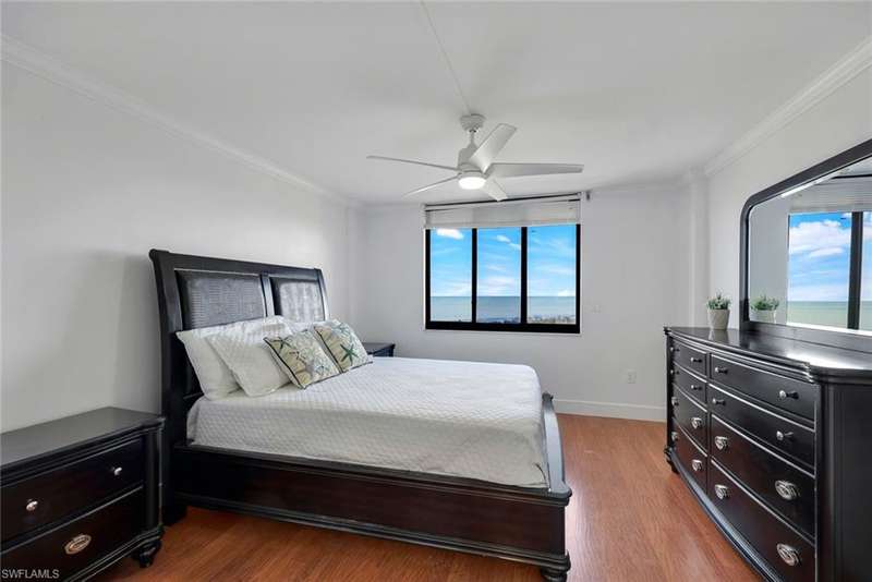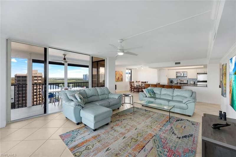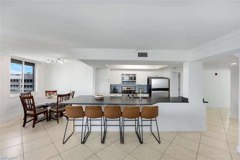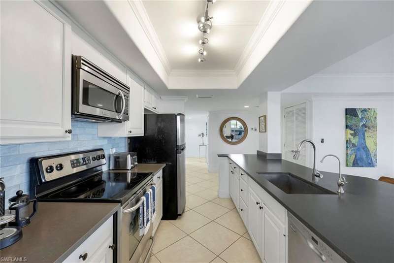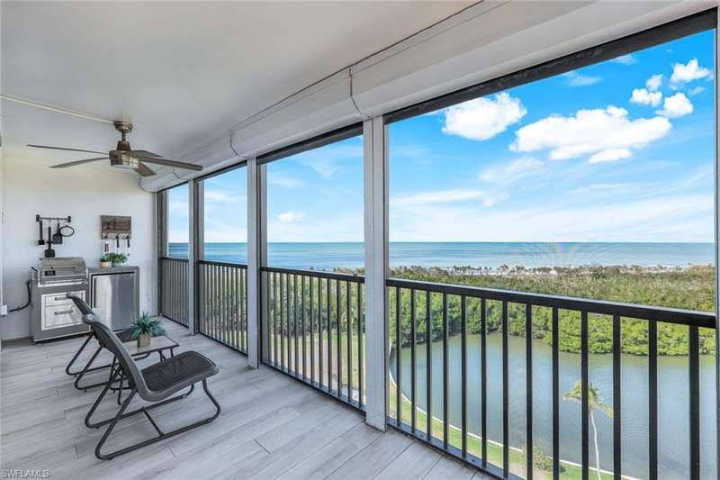 RARELY AVAILABLE PENTHOUSE, 11th floor condo with panoramic Gulf and Bay Views! Welcome to your dream coastal retreat a coveted NW corner condo on the 11th and top floor, offering breathtaking Gulf and Bay views from every room. This remodeled gem features an open-concept kitchen and an electric grill on the terrace, perfect for enjoying the outdoors while preparing meals. Step onto the wraparound lanai or the private master balcony to soak in serene sunrises and stunning sunsets over the mangroves and preserve. Located just a short stroll from Vanderbilt Beach and Wiggins Pass State Park, this condo combines tranquility with unbeatable convenience. Inside, you'll find abundant storage with a walk-in closet and additional spaces conveniently located across the hall and near the newly updated lobby. The building has also been enhanced with modern social and fitness rooms, providing a fresh, inviting atmosphere for residents. Surf Colony I offers resort-style amenities, including cov