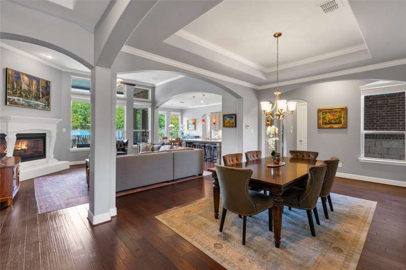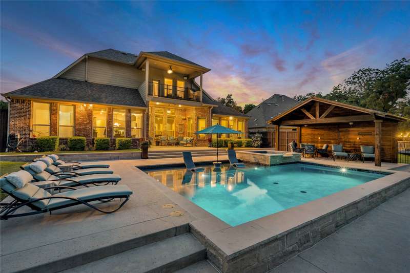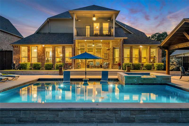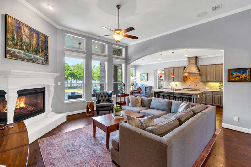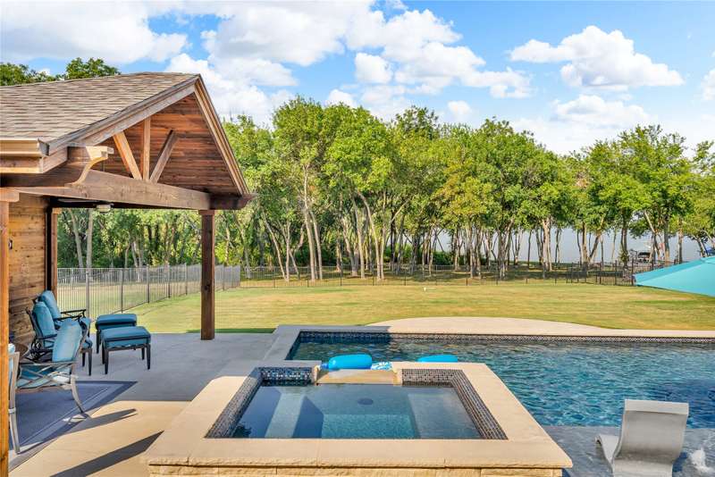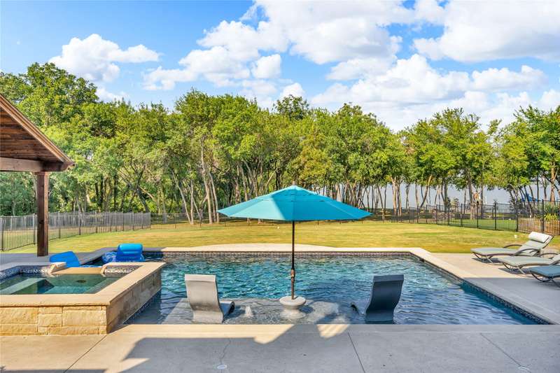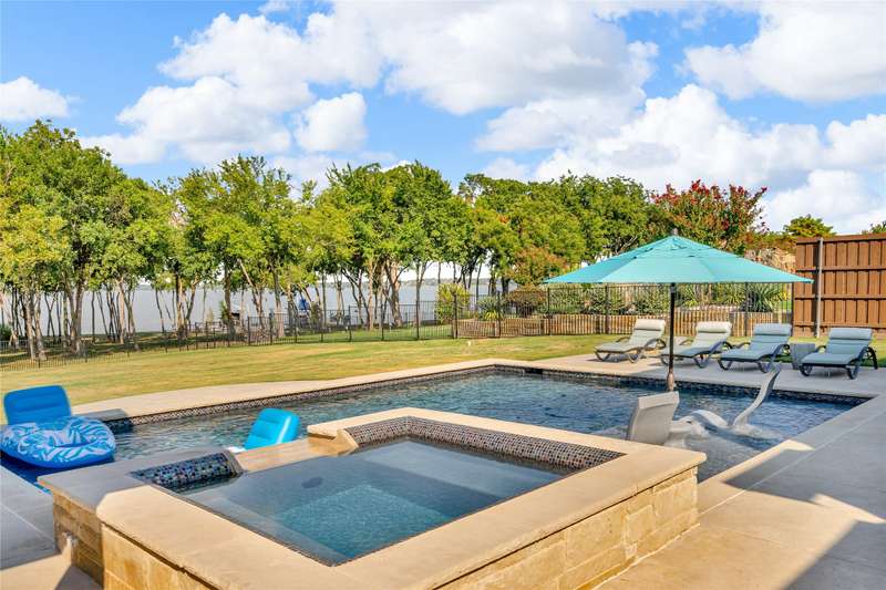 Experience true lakefront living with direct access to Lake Ray Hubbard from your own backyard. Nestled in the quiet, gated community of Waters Edge in Rowlett, this luxury property offers privacy, security, and a lifestyle centered around the water. The homes open floor plan flows seamlessly from the living room into the kitchen and dining areas, where walls of windows frame stunning lake views. The chefs kitchen features stainless steel appliances, granite countertops, an island, and a breakfast area that overlooks the water. The living room boasts a fireplace and expansive windows showcasing the backyard oasis. The first floor offers a private primary ensuite, an additional bedroom, a bonus room, and an executive office with French doors. Upstairs, youll find three bedrooms, two full baths, a game room with a covered balcony overlooking the lake, and an oversized media room. Outdoors, relax in the resort-style backyard with a saltwater pool, sun shelf, spa, and water features. A covered outdoor living center with TV hookup and multiple seating areas make entertaining effortless. A steel seawall is already in place, and boat docks are allowed. Perfectly located with convenient access to major highways, the property provides easy access to George Bush-190 without having to cross the lake, putting dining, shopping, and downtown Dallas within easy reach.