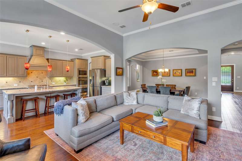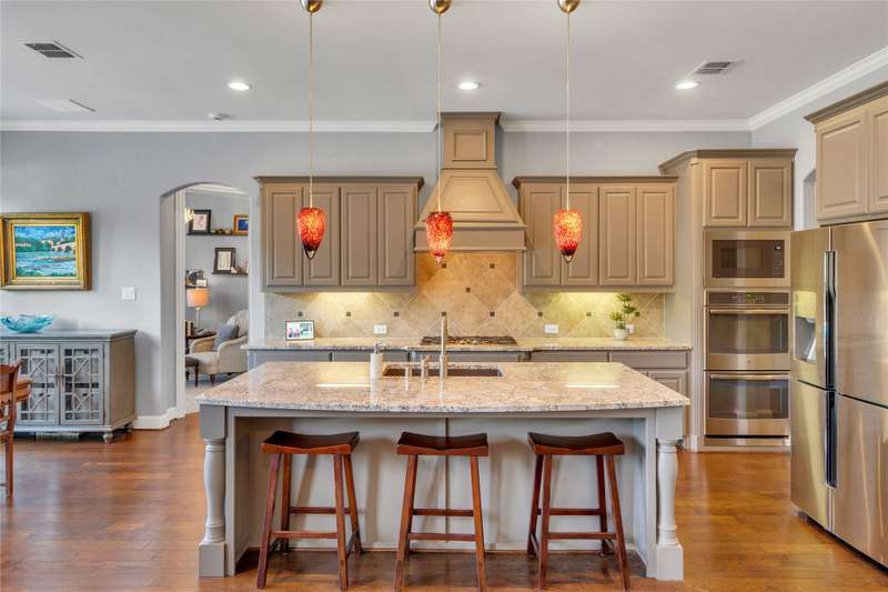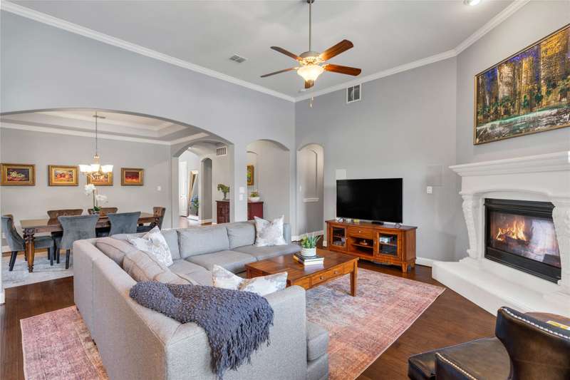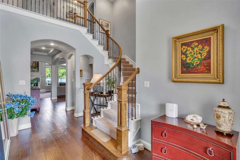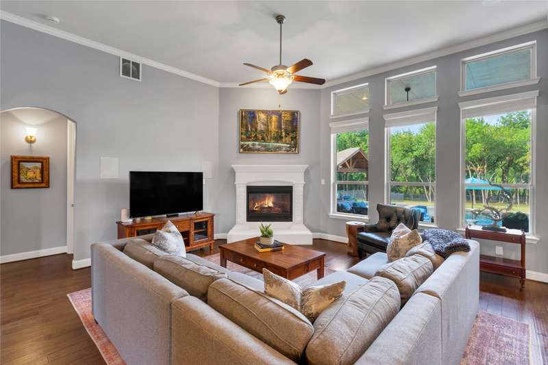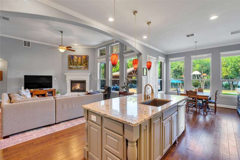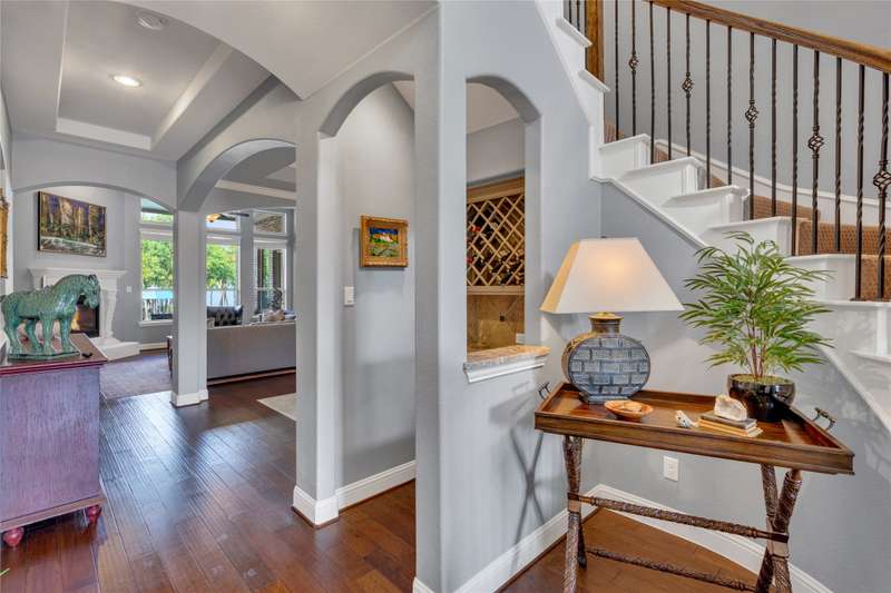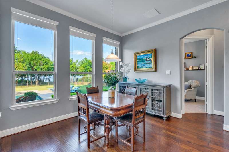 Experience true lakefront living with direct access to Lake Ray Hubbard from your own backyard. Nestled in the quiet, gated community of Waters Edge in Rowlett, this luxury property offers privacy, security, and a lifestyle centered around the water. The homes open floor plan flows seamlessly from the living room into the kitchen and dining areas, where walls of windows frame stunning lake views. The chefs kitchen features stainless steel appliances, granite countertops, an island, and a breakfast area that overlooks the water. The living room boasts a fireplace and expansive windows showcasing the backyard oasis. The first floor offers a private primary ensuite, an additional bedroom, a bonus room, and an executive office with French doors. Upstairs, youll find three bedrooms, two full baths, a game room with a covered balcony overlooking the lake, and an oversized media room. Outdoors, relax in the resort-style backyard with a saltwater pool, sun shelf, spa, and water features. A covered outdoor living center with TV hookup and multiple seating areas make entertaining effortless. A steel seawall is already in place, and boat docks are allowed. Perfectly located with convenient access to major highways, the property provides easy access to George Bush-190 without having to cross the lake, putting dining, shopping, and downtown Dallas within easy reach.