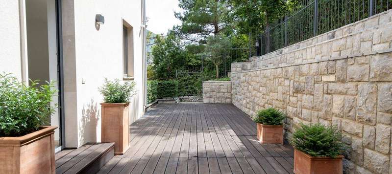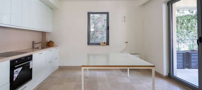 Each floor has an open plan living room, kitchen, dining area, two bedrooms, two bathrooms, and a nice terrace. On the first floor, there is also a pleasant green terrace, suitable for barbecue.