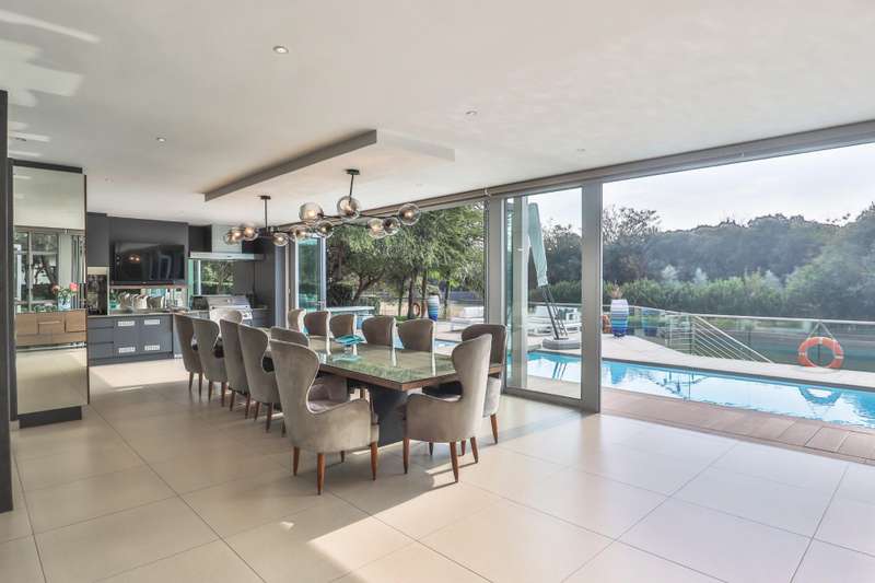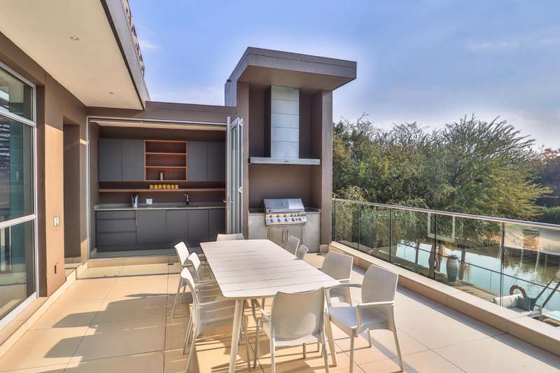 LUXURY LOCATION LIFESTYLE YES YOU CAN HAVE IT ALL This exclusive property is situated in an upmarket estate at Hartbeespoort. The home is designed to allow maximum exposure to the views of the Magaliesberg to the north and the water canal and surrounding beauty of "The Islands" Estate. Large floor-to-ceiling windows and stacking doors allow the sunlight to penetrate most of the home, with a centralized cooling system to cool everything down during the hot South African summer months. Automated roller blinds in the living arches will allow privacy. Each of the 6 en-suite bedrooms has been individually decorated. The entertainment area includes a pizza oven, Boma (fire pit) Pool (with automated cover)Built-in Bar (with integrated fridge and ice maker) Built-in Gas braai (grill) 30,000 KVA Generator - wired into the house All furniture, Decor, Appliances, Crockery, Cutlery, Curtains are negotiable. Centralized vacuum system 2 Bedroom Flatlet View by appointment only!