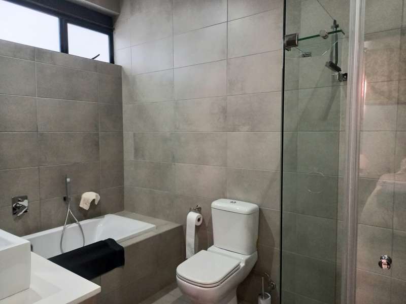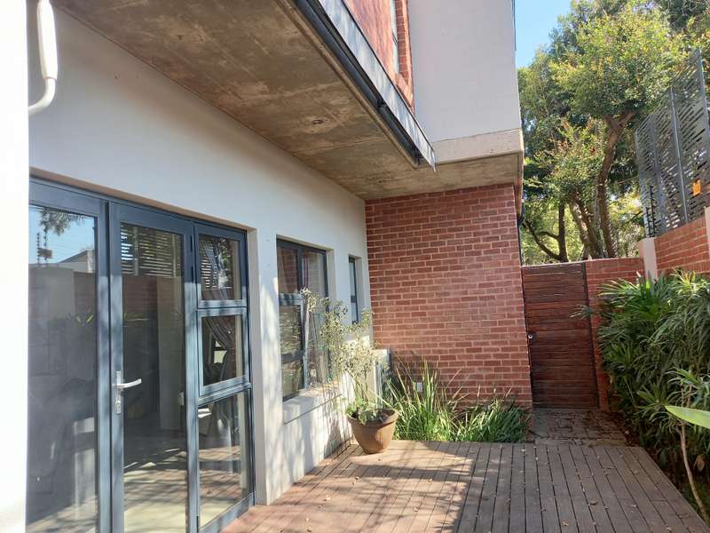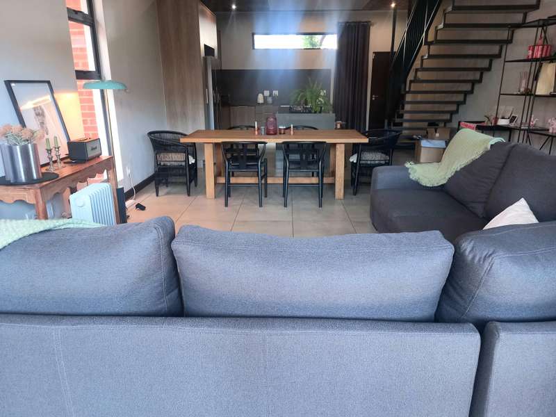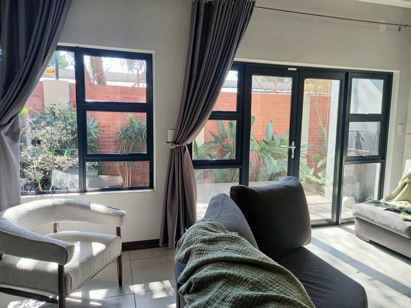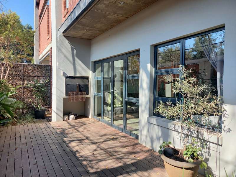 Upmarket, contemporary 3 bedroom townhouse in Menlo Park - this is where you want to be! This designer townhouse oozes style and contemporary elegance. Carefully constructed to offer space, modern design and excellent finishes, in a double storey layout. What you will love about it : - LOCATION! Boomed off, and cul-de-sac street. - Small security complex - only 5 units. - Thoughtful design, set in beautiful common areas. - Ground floor : open plan living, dining and kitchen. - Upstairs : 3 spacious bedroooms, 2 bathrooms with main en-suite. - Study nook. - Wooden deck patio with built-in braai and retractable cover. - Double automated garage. Direct entrance into the house. - Electric complex gate. - Visitor's parking. - Cul-de-sac street. - Tranquil communal gardens with water feature. This modern beauty is located in a cul-de-sac street in a sought after area of Menlo Park, near the Greenlynn Village. Easy access to Lynnwood, Atterbury Roads, TUKS, numerous top schools. Don't let this one slip away, call us to view today!