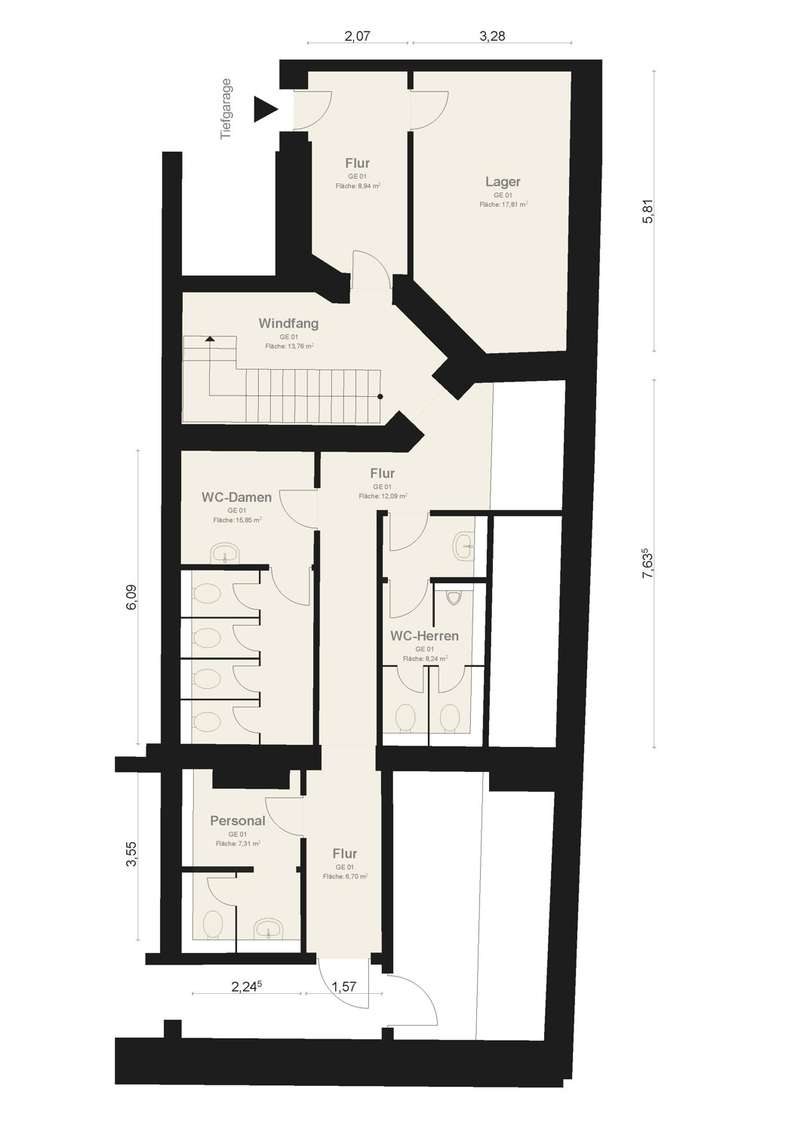 The historic Consum quarter in the heart of the city center of Brandenburg an der Havel is currently undergoing renovation and new construction and is scheduled to offer space for 26 residential units, 5 commercial and office units, 2 stores and around 33 underground parking spaces from spring 2025. This commercial unit has a usable area of approx. 273 m² on the first floor and in the basement. The retail or restaurant space offers barrier-free access and a generous area of approx. 167 m². The basement houses the associated ladies', men's rooms' and staff WCs as well as storage and supply rooms. The street-facing window front with a height of up to 3 m will be a highlight. The rear part of the commercial unit is also extensively lit by large windows. If the space provided is not sufficient for your project, additional space in the basement can be rented by arrangement. As the building is currently under construction, the commercial unit can be individually adapted to the needs of the future tenant. This means that a variety of commercial types can be realized. The entire commercial unit is heated with energy-saving underfloor heating. The energy is generated CO2-neutrally by a wood pellet heating system. The inner courtyard above the underground car park connects the front part of the building with the rear part and is to be landscaped with a small park. Various employee and customer parking spaces will be available in the underground garage after completion. The tenancy is scheduled to begin after completion of the construction work in spring 2025. Benefit from considerable footfall in front of your store or restaurant. Thanks to the good room layout and high-quality fittings, this commercial unit is ideal for an upmarket restaurant, for example. The basic rent is approx. 18.00 €/m² plus utilities for the sales rooms and 9.00 €/m² plus utilities for the ancillary rooms. Three times the basic rent is paid as a deposit to the landlord. Convince yourself of the potential of the fabric unit and realize your individual business.