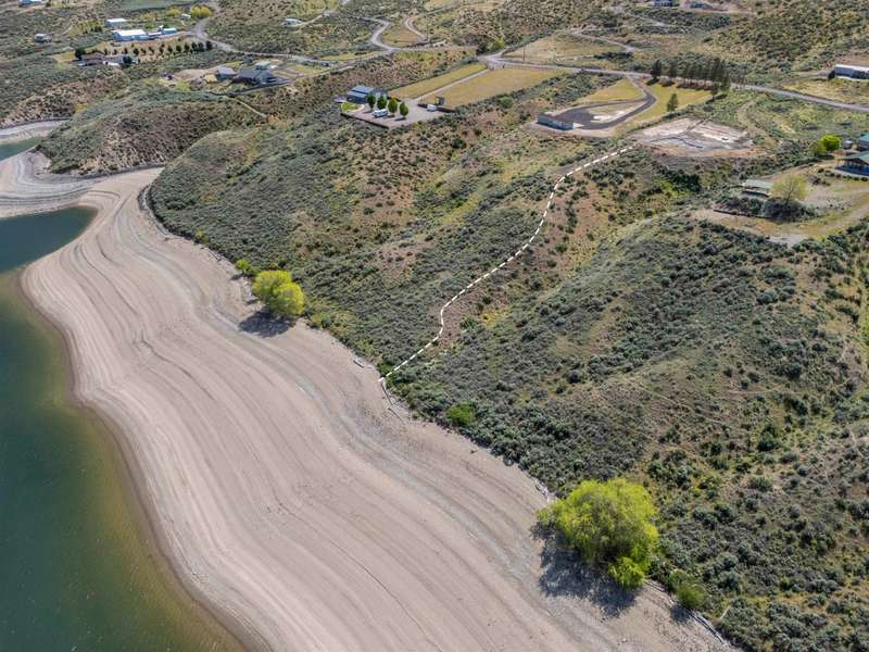 Majestic Lake Roosevelt waterfront lot-2.20 acres on the 1310 lot line! Enjoy breathtaking views and an easy walk down to a sandy beach where you can anchor your boat right in front of your lot. Water, septic and electric are installed. Foundation is in place with plans for a 3 BDR. 2BTH., 2,110 Sq. Ft. Home, (plans available upon request). Located just minutes from Spring Canyon boat launch for year-around fishing, boating and hiking in the stunning National Lake Roosevelt Recreational Area.