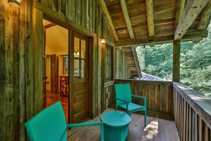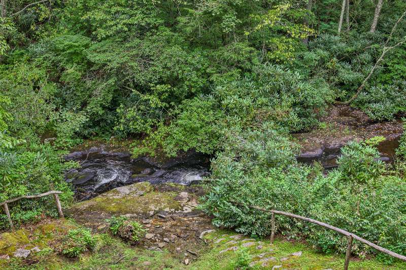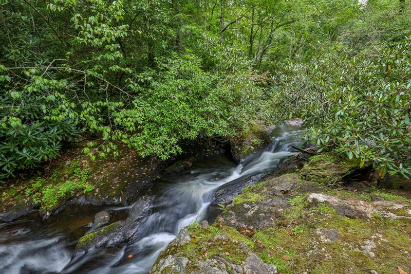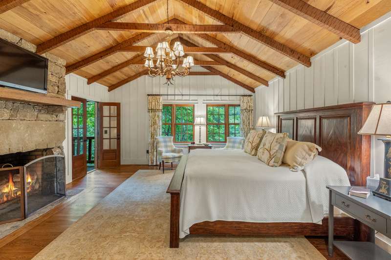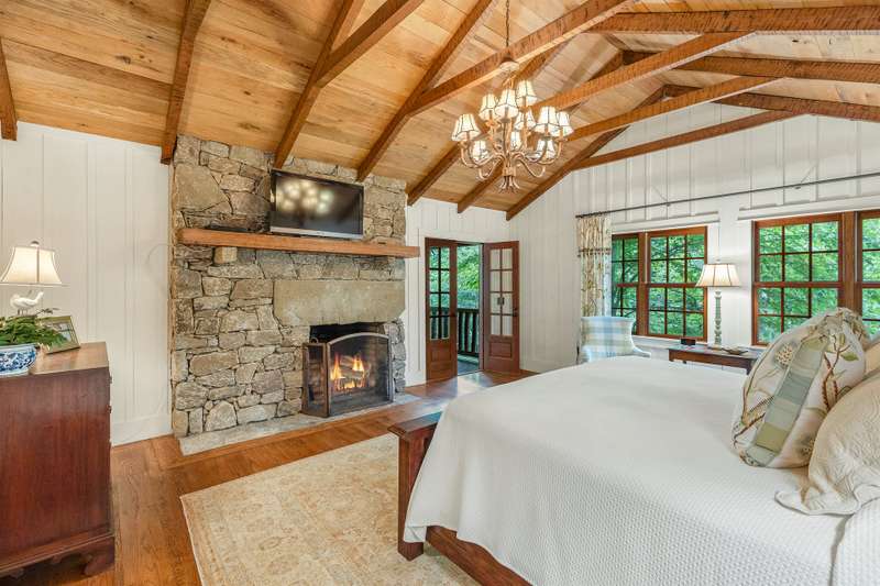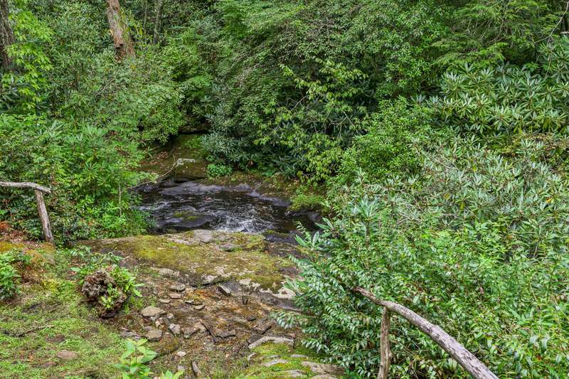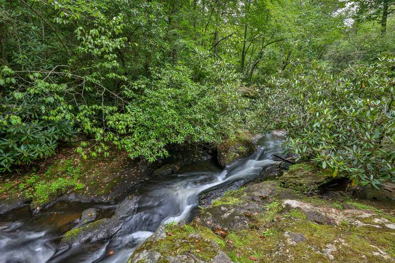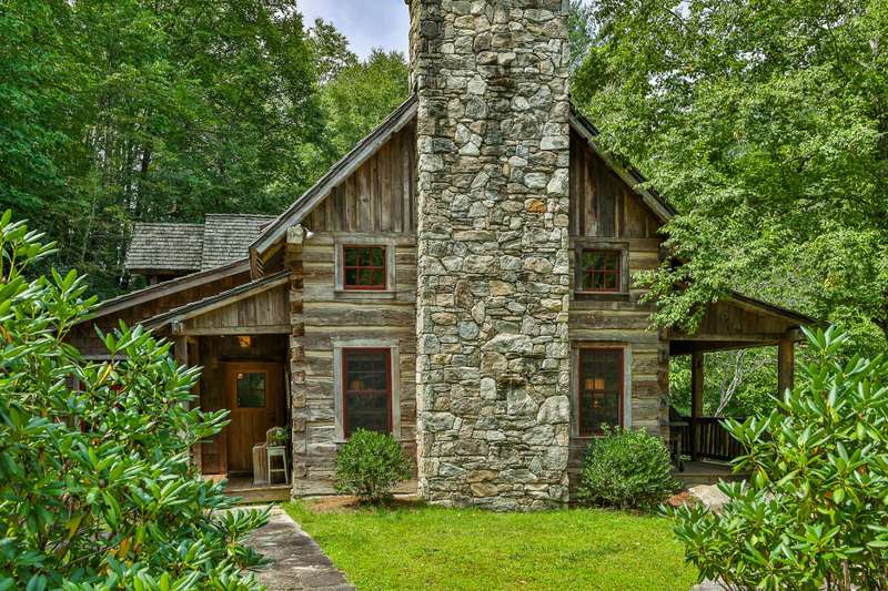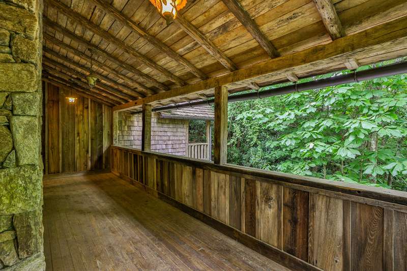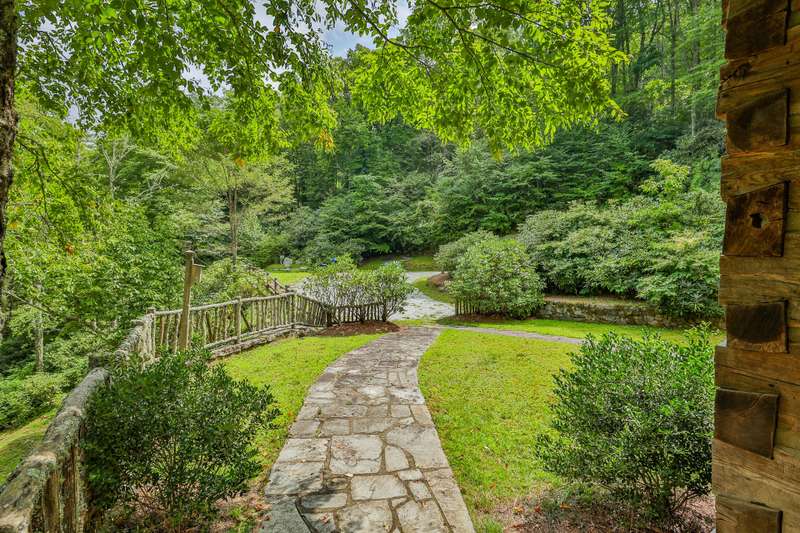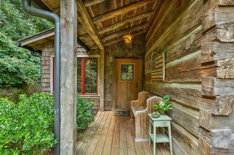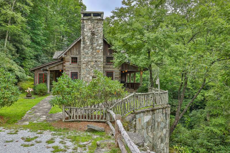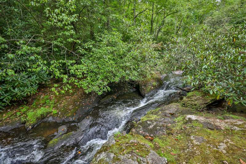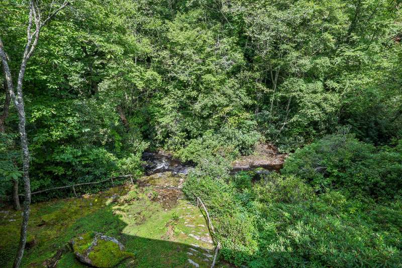 Discover the quintessential Highlands home, masterfully crafted by renowned local builder Tommy Chambers and completed in 2010. This 4 bedroom, 5 1/2 bathroom masterpiece showcases the unparalleled charm of antique Pennsylvania timbers, seamlessly blending historical character with modern amenities. Nestled on 1.82 private acres, the property overlooks the picturesque Big Creek and waterfall, whose soothing sounds can be enjoyed from each of the home's seven covered porches. A large family can sleep 10 easily and still have privacy Inside the home, you'll find three extraordinary stone fireplaces, constructed from locally sourced boulders uncovered during construction, adding a rustic elegance to the space. Additionally, there is another fireplace on the lower level large porch. The expansive main level living room features soaring ceilings, a loft, and a grand fireplace, with direct access to a covered porch that offers breathtaking views of the cascading creek and waterfall. The kitchen features a breakfast area, sub-zero refrigerator, hard surface countertops, a high-end double oven gas range with griddle, grill, heat lamps and exhaust. The main level primary bedroom is a tranquil retreat, complete with a beautiful fireplace, vaulted ceilings, and a large private porch. Each spacious guest bedroom includes an ensuite bath and its own private covered porch, ensuring comfort and privacy for all. Though this home is conveniently close to town, it offers a serene escape from the world, where history, craftsmanship, and natural beauty converge. Adding to its allure, the property is just moments away from the upscale SkyLine Lodge and Oak Steakhouse, providing quick and easy access to a town favorite restaurant and bar. Experience the timeless allure and historical richness of this expertly designed home, where every detail has been thoughtfully crafted to create a sanctuary of peace and elegance.