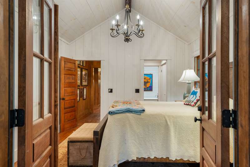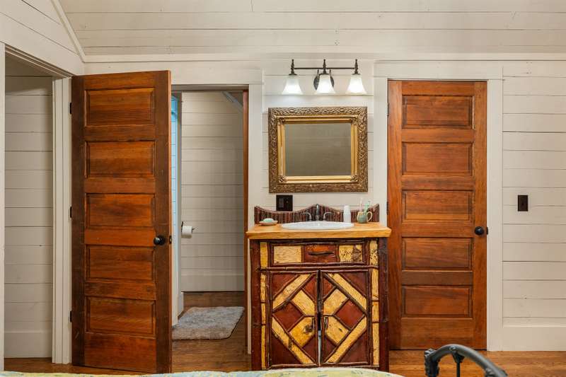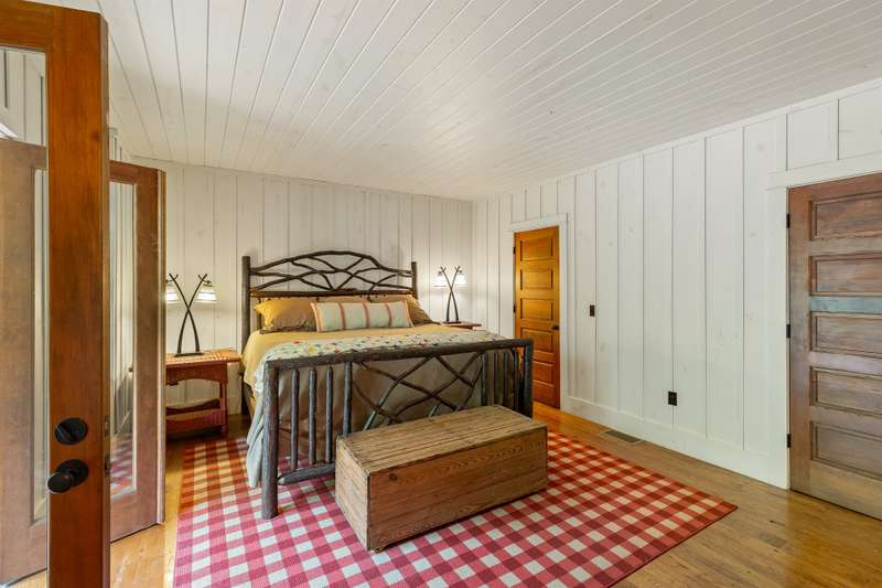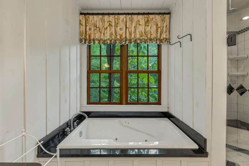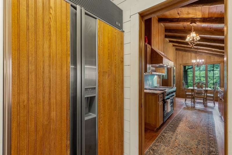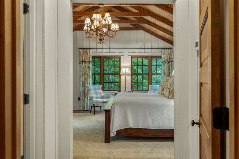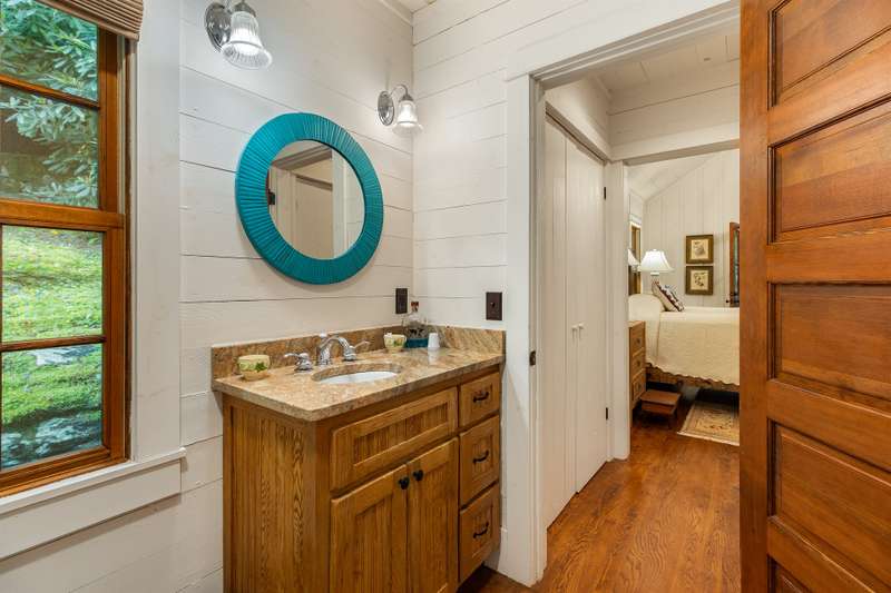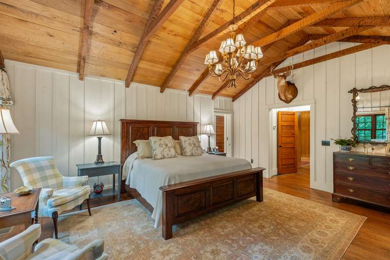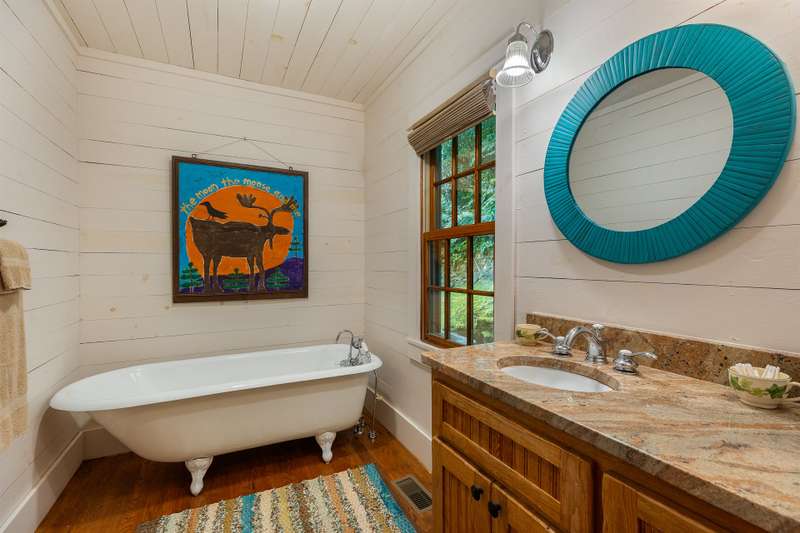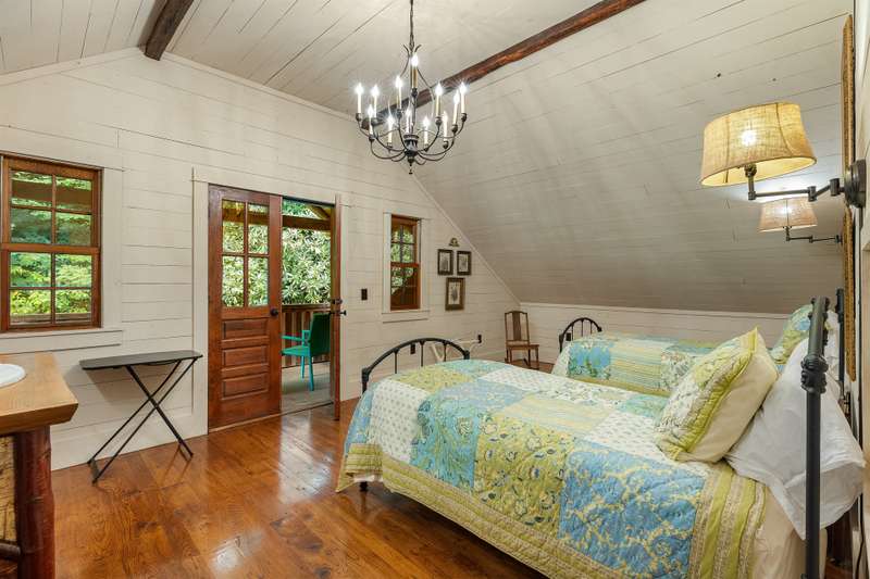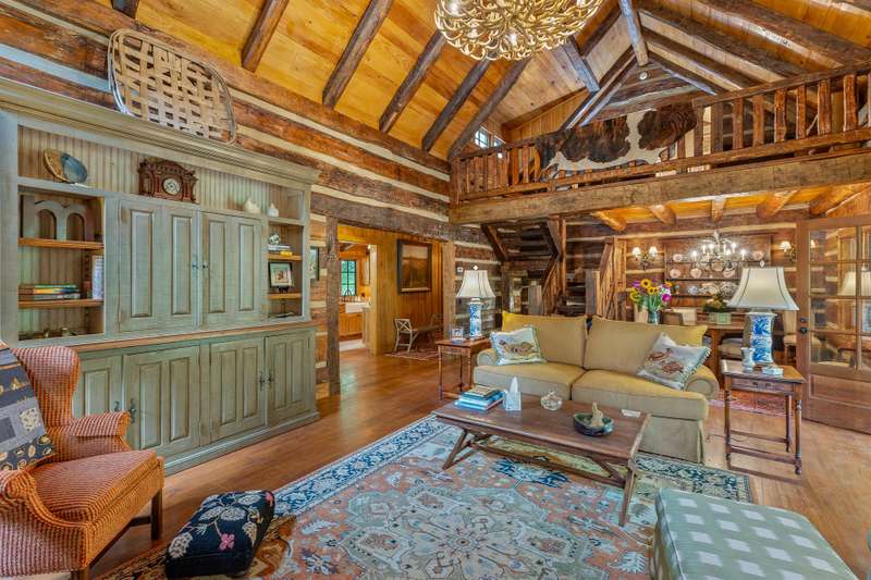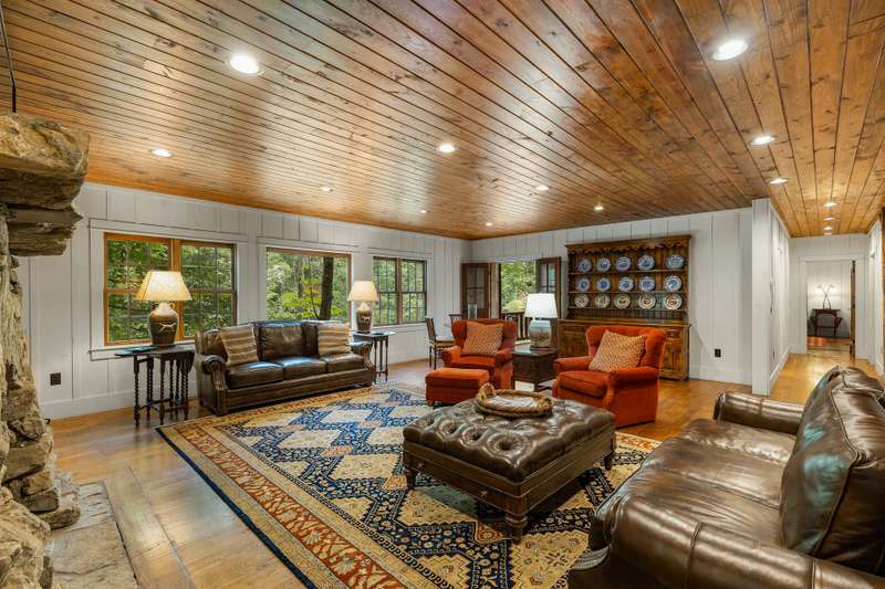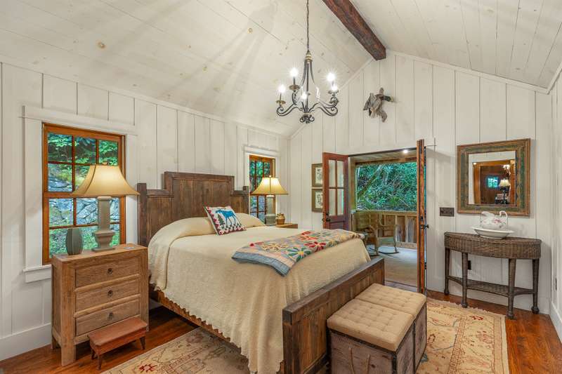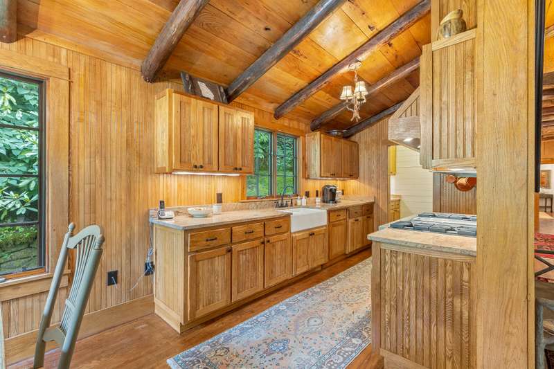 Discover the quintessential Highlands home, masterfully crafted by renowned local builder Tommy Chambers and completed in 2010. This 4 bedroom, 5 1/2 bathroom masterpiece showcases the unparalleled charm of antique Pennsylvania timbers, seamlessly blending historical character with modern amenities. Nestled on 1.82 private acres, the property overlooks the picturesque Big Creek and waterfall, whose soothing sounds can be enjoyed from each of the home's seven covered porches. A large family can sleep 10 easily and still have privacy Inside the home, you'll find three extraordinary stone fireplaces, constructed from locally sourced boulders uncovered during construction, adding a rustic elegance to the space. Additionally, there is another fireplace on the lower level large porch. The expansive main level living room features soaring ceilings, a loft, and a grand fireplace, with direct access to a covered porch that offers breathtaking views of the cascading creek and waterfall. The kitchen features a breakfast area, sub-zero refrigerator, hard surface countertops, a high-end double oven gas range with griddle, grill, heat lamps and exhaust. The main level primary bedroom is a tranquil retreat, complete with a beautiful fireplace, vaulted ceilings, and a large private porch. Each spacious guest bedroom includes an ensuite bath and its own private covered porch, ensuring comfort and privacy for all. Though this home is conveniently close to town, it offers a serene escape from the world, where history, craftsmanship, and natural beauty converge. Adding to its allure, the property is just moments away from the upscale SkyLine Lodge and Oak Steakhouse, providing quick and easy access to a town favorite restaurant and bar. Experience the timeless allure and historical richness of this expertly designed home, where every detail has been thoughtfully crafted to create a sanctuary of peace and elegance.