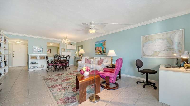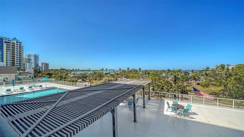 THE BEST CONDOMINIUM VALUE IN THE HEART OF DOWNTOWN SARASOTA, THIS FULL BAY VIEW UNIT IS PRICED TO SELL! Soak in the sweeping views of the Sarasota Bayfront from this beautifully situated 5th floor, 1-bedroom, 2-full bath residence at The 101 Condominium featuring a great floor plan and spacious bayfront terrace perfect for savoring balmy breezes, breathtaking sunsets, and the lively cityscape. Just a stones throw away from Marina Jack, residents enjoy immediate access to deep-water docking, waterfront dining, and the ultimate boating lifestyle. Inside this light-filled unit, you will enjoy a large eat-in kitchen with pass-through to the dining area, a gracious living room with built-in, a restful primary suite with ensuite bath and walk-in closet, and a convenient 2nd bath. Enjoy peaceful water views from nearly every room, easy-care ceramic tile flooring throughout, and a brand-new A/C unit for year-round comfort. The 101 Condominium is a premier downtown residence that recently completed an impressive $8 million modernization, including hurricane-rated sliding doors and windows in all units, a newly designed lobby, and extensive structural upgrades. Residents enjoy a rich array of resort-style amenities: heated swimming pool with grill area, state-of-the-art gym and yoga room, library and movie theater, social room, and attentive concierge and on-site maintenance staff. For added peace of mind, The 101 has passed its milestone inspection and is nearing completion of an exterior stucco replacement and painting project—ensuring long-term value, beauty, and structural integrity for years to come. Directly out the back entrance of the property is historic Palm Avenue, lined with art galleries, charming boutiques, and inviting restaurants. And a block away is Main Street for even more dining and nightlife options. Ideally located just minutes from the world-renowned beaches of Lido Key, Longboat Key, and Siesta Key, this residence offers effortless access to Sarasota’s most celebrated coastal destinations. This is downtown Sarasota living at its finest—where luxury, location, and lifestyle come together with stunning bayfront views.
