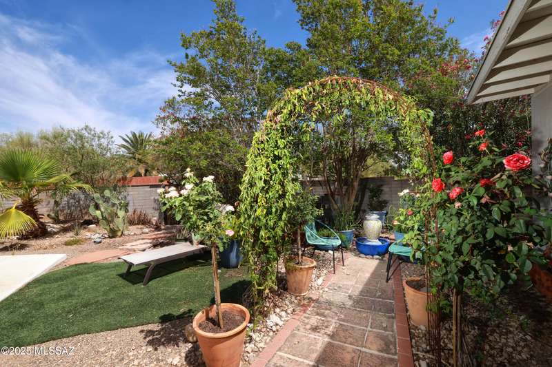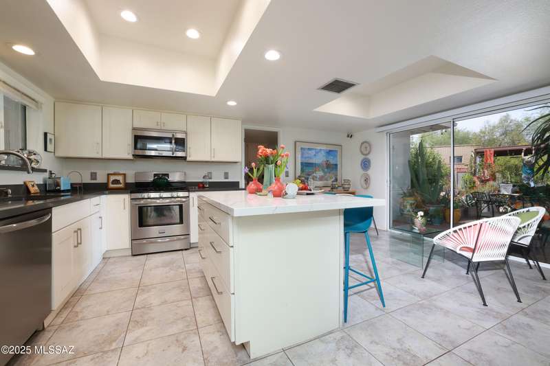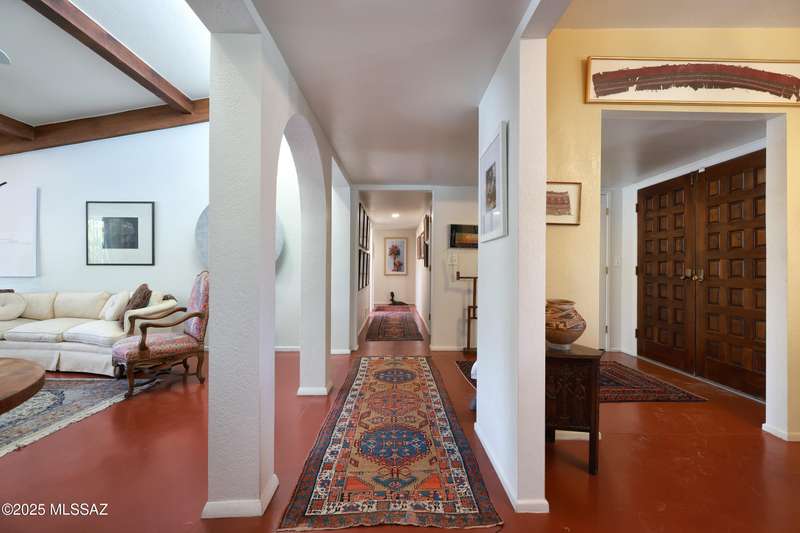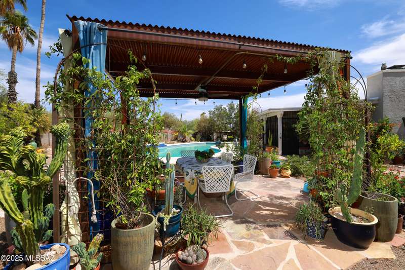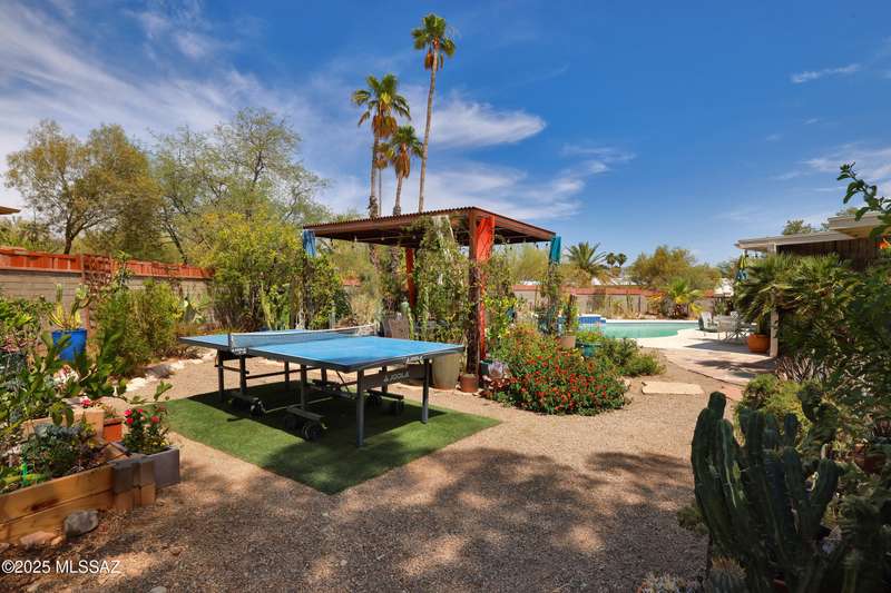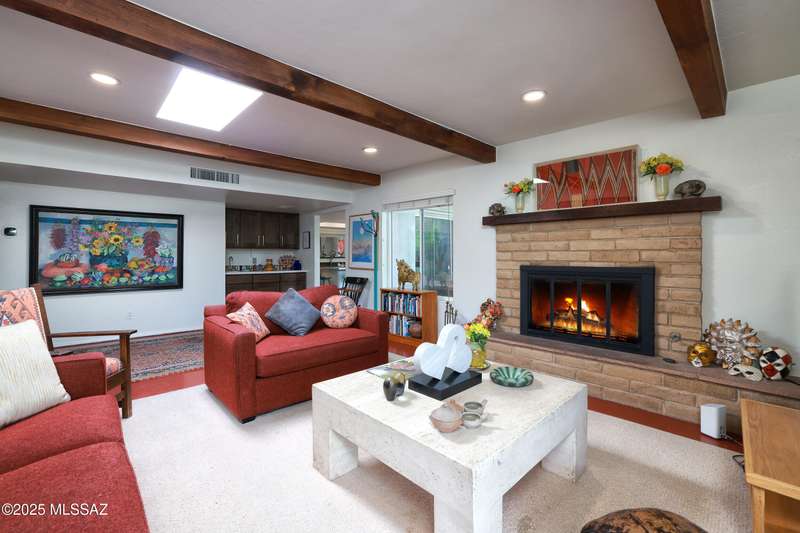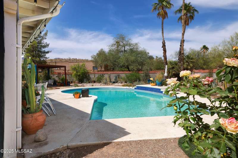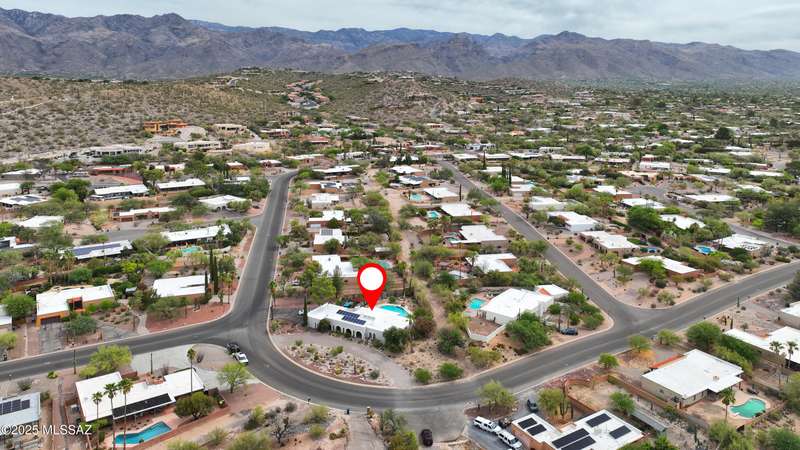 Charming north side retreat on a large elevated corner lot in desirable Sabino Vista Knolls. Solid masonry construction with 5 bedrooms & 3 full baths. Tastefully updated estate with a new island kitchen, a butler's pantry, 3 new baths, all with quartz counters. Stunning stained concrete floors. Wonderful living spaces include a large formal dining room, entertaining size living room with vaulted ceilings and a wall of glass, family room with a fireplace and wet bar. The back yard is a beautifully landscaped retreat featuring a sparkling pool, free standing Ramada, arbor, a screened porch and multiple seating areas with views of the mountains. The owned solar system keeps your electric bills low. Award winning schools! Established beautiful neighborhood. This is a very special property!