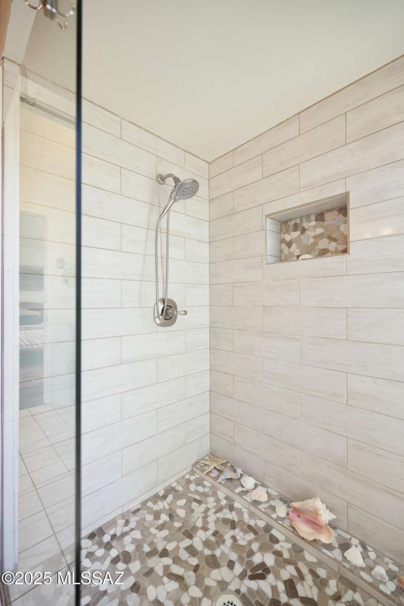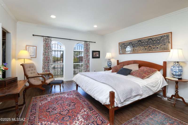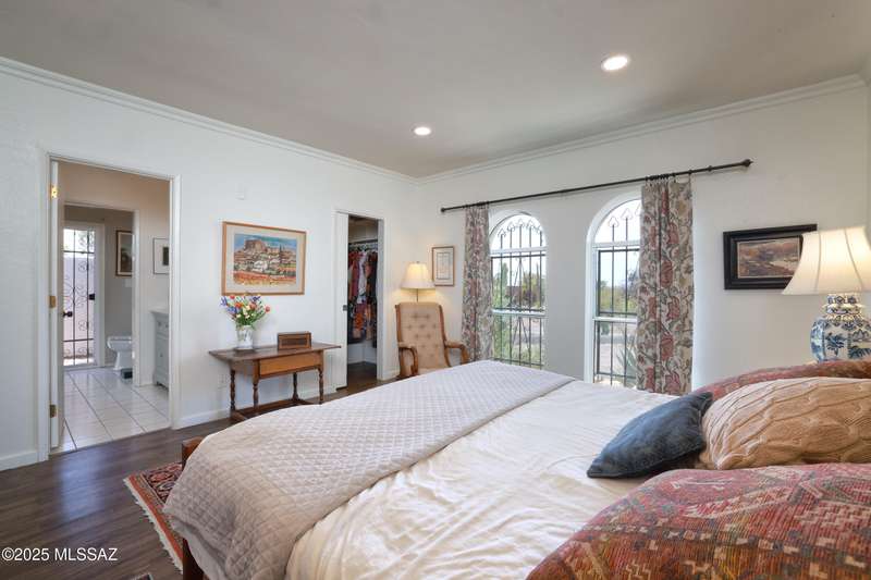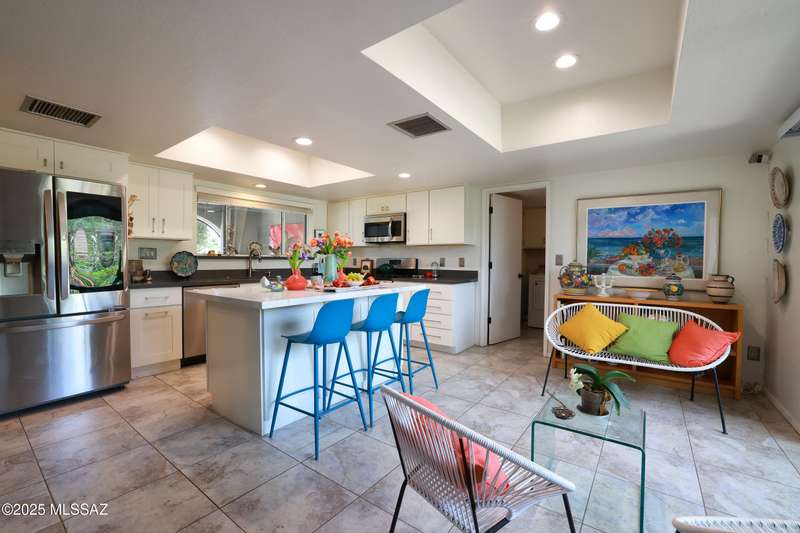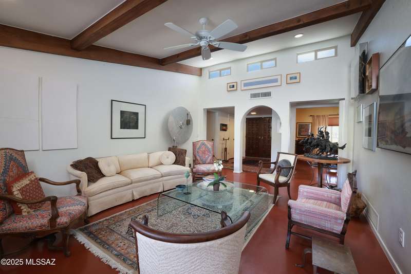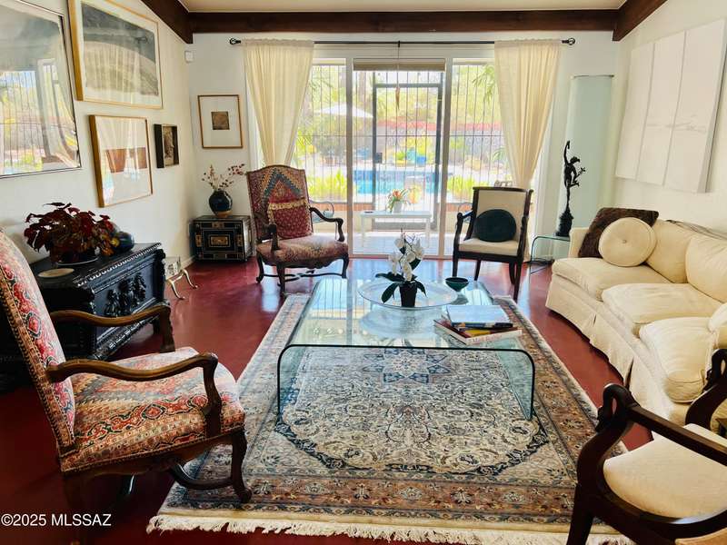Charming north side retreat on a large elevated corner lot in desirable Sabino Vista Knolls. Solid masonry construction with 5 bedrooms & 3 full baths. Tastefully updated estate with a new island kitchen, a butler's pantry, 3 new baths, all with quartz counters. Stunning stained concrete floors. Wonderful living spaces include a large formal dining room, entertaining size living room with vaulted ceilings and a wall of glass, family room with a fireplace and wet bar. The back yard is a beautifully landscaped retreat featuring a sparkling pool, free standing Ramada, arbor, a screened porch and multiple seating areas with views of the mountains. The owned solar system keeps your electric bills low. Award winning schools! Established beautiful neighborhood. This is a very special property!