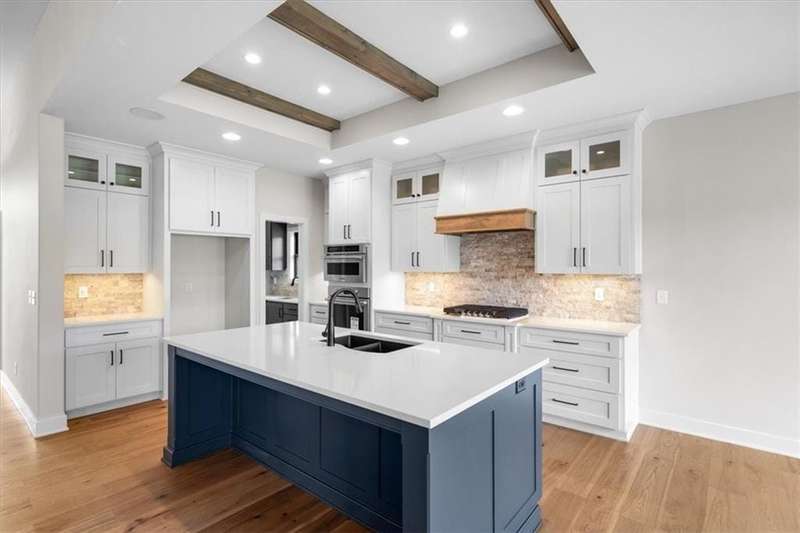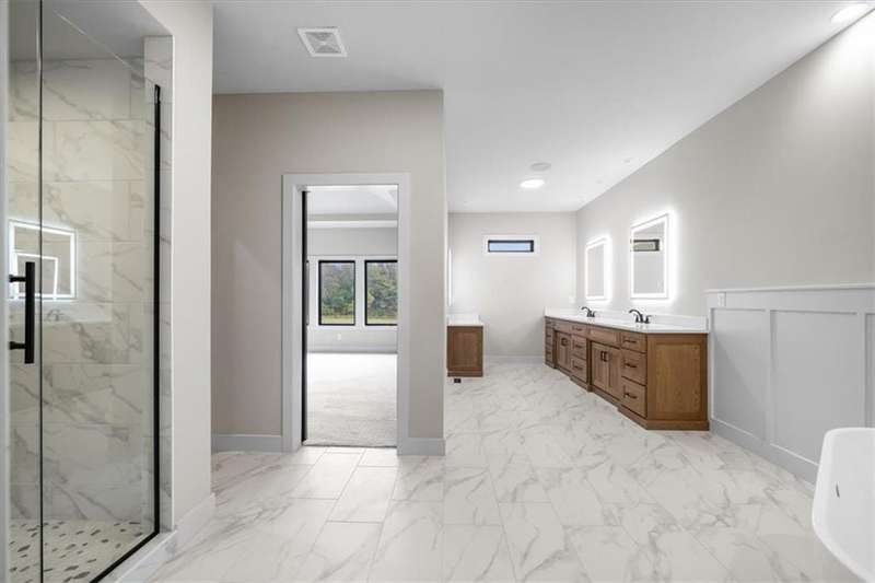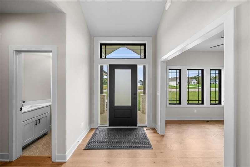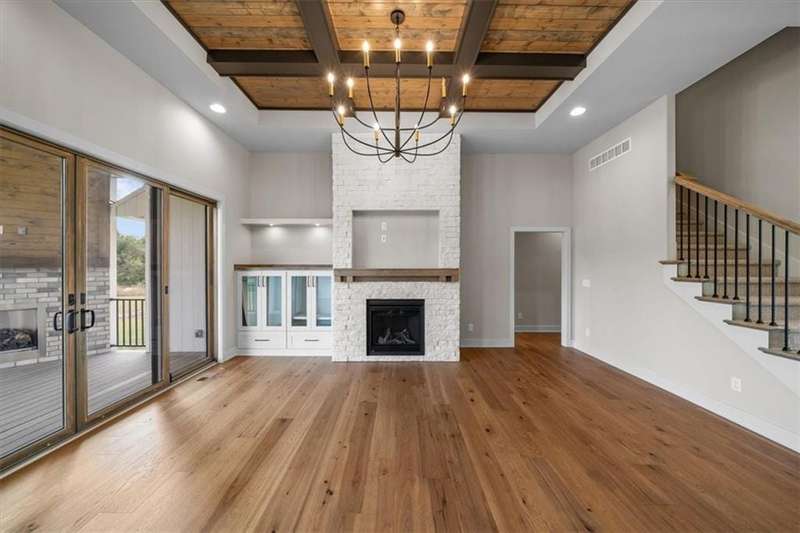 BUILDER IS OFFERING A 2/1 RATE BUYDOWN WITH ACCEPTED CONTRACT!! Discover our dream home in this breathtaking 1.5 -story home, perfectly situated on 3 acres. With 5 bedrooms and 4.5 bathrooms, this home offers unparalleled combination of elegance and comfort. Step inside to a grand open floor plan accentuated by soaring vaulted ceilings and abundance of floor-to-ceiling windows that fill the space with natural light. The chef's kitchen is a true highlight, featuring exquisite quartz countertops and convenient butler's pantry, perfect for entertaining guests. Enjoy seamless indoor-outdoor living on the covered deck, complete with a cozy fireplace, ideal for relaxing evenings or lively gatherings. A versatile flex room on the main floor provides the perfect space for a home office or guest bedroom, while the main floor primary suite serves as a private oasis. The spa like primary bathroom boasts a double vanity, an enormous walk-in shower, a luxurious soaker tub, and a spacious walk-in closet with convenient access to the laundry room. Upstairs you'll find 3 additional bedrooms and 2 full bathrooms, ensuring ample space for guests. Finished basement features rec area with a wet bar, a 5th bedroom, full bathroom, and plenty of extra storage. Located just 20 minutes from the heart of Lee's summit, this home combines country living with city convenience.