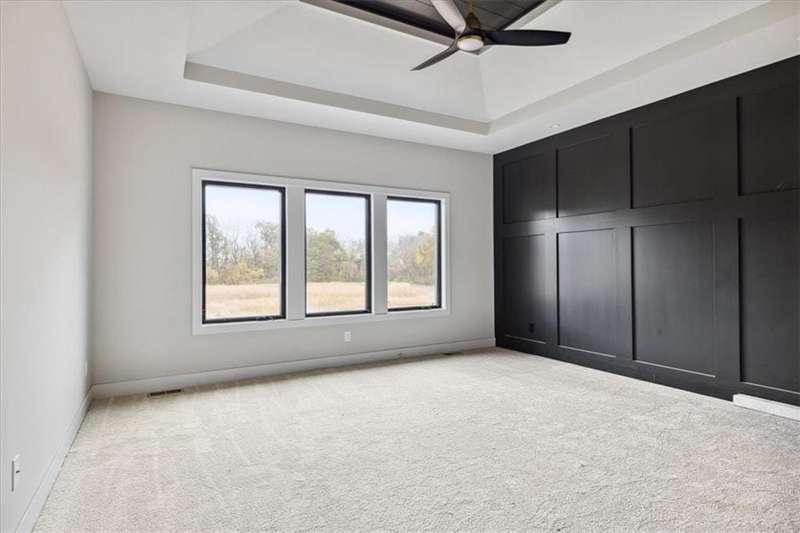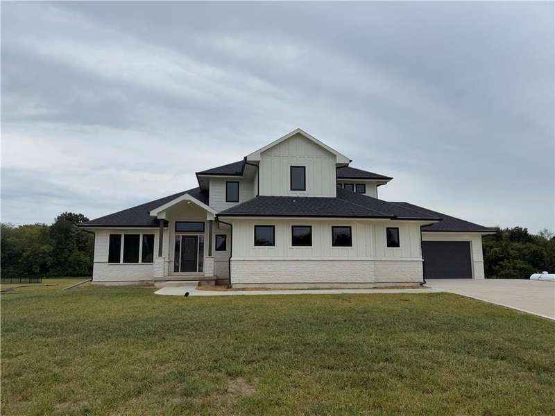 Discover your dream home in this breathtaking 1.5 -story home, perfectly situated on 3 acres. With 5 bedrooms and 4.5 bathrooms, this home offers unparalleled combination of elegance and comfort. Step inside to a grand open floor plan accentuated by soaring wood-vaulted ceilings and abundance of floor-to-ceiling windows that fill the space with natural light. The chef's kitchen is a true highlight, featuring exquisite quartz countertops and convenient butler's pantry, perfect for entertaining guests. Enjoy seamless indoor-outdoor living on the covered deck, complete with a cozy fireplace, ideal for relaxing evenings or lively gatherings. A versatile flex room on the main floor provides the perfect space for a home office or guest bedroom, while the main floor primary suite serves as a private oasis. The spalike primary bathroom boasts a double vanity, an enormous walk-in shower, a luxurious soaker tub, and a spacious walkin closet with convenient access to the laundry room. Upstairs you'll find 3 additional bedrooms and 2 full bathrooms, ensuring ample space for guests. Finished basement features rec area with a wet bar, a 5th bedroom, full bathroom, and plenty of extra storage. Located just 20 minutes from the heart of Lee's summit, this home combines country living with city convenience.