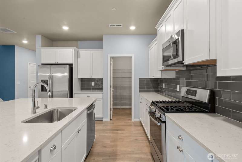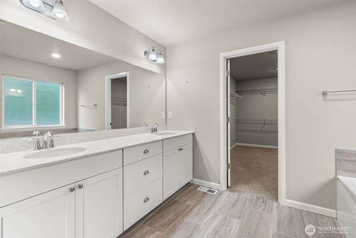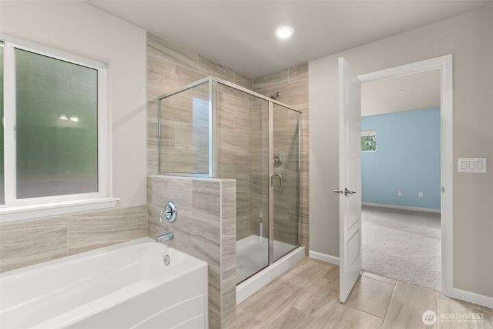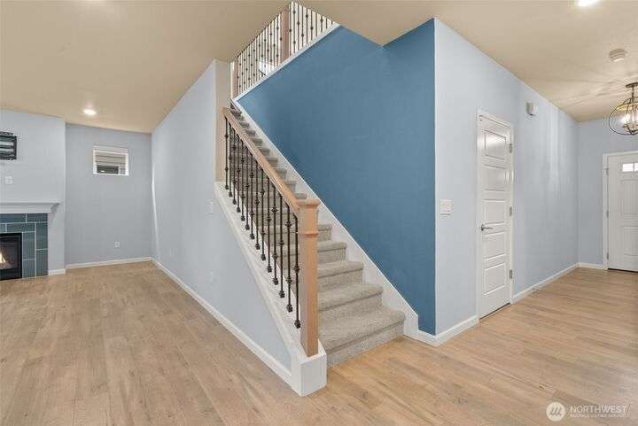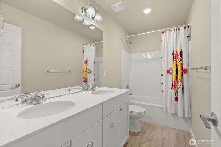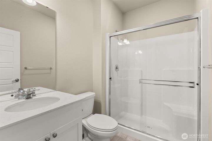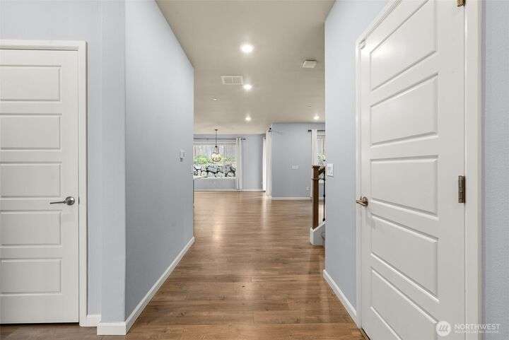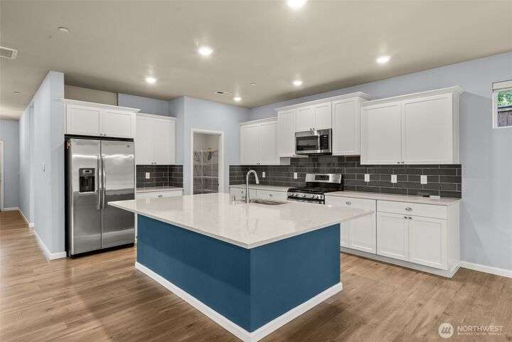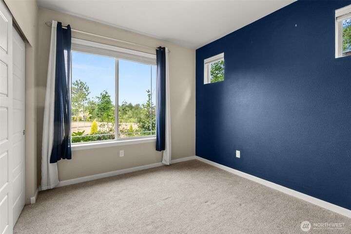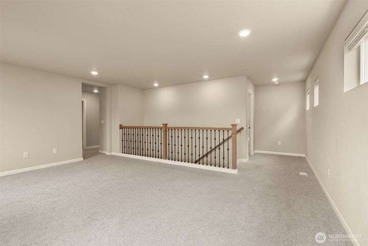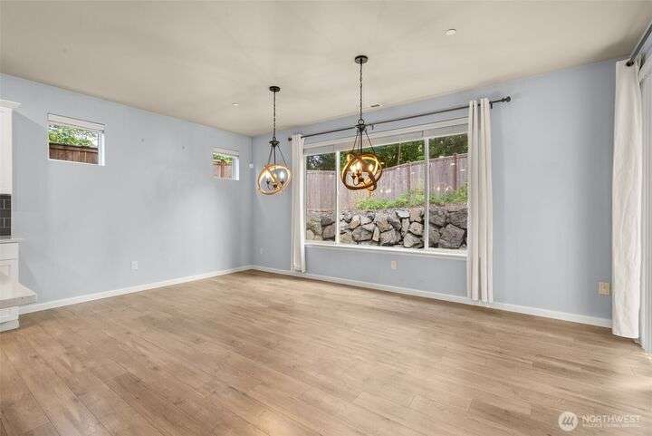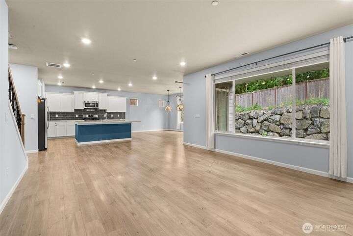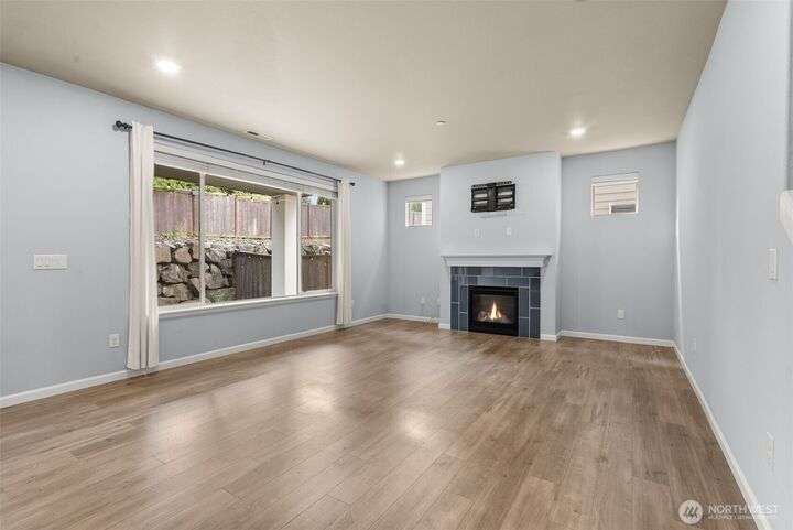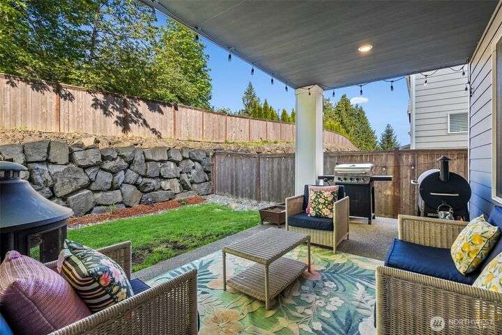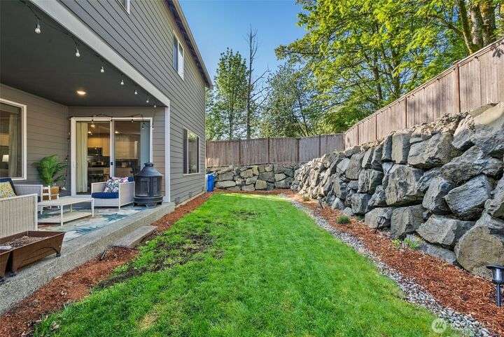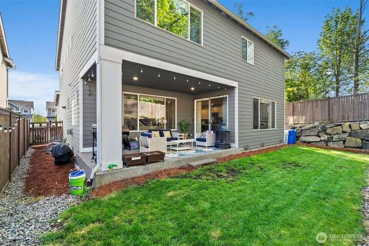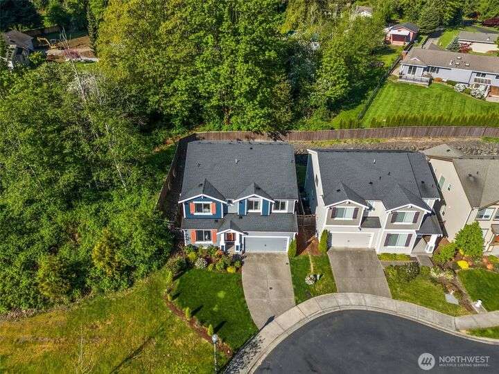 Located in The Bridges on Lea Hill, this 5-bedroom, 2.75-bath home offers 3,093 sq ft of stylish living in a quiet cul-de-sac surrounded by greenbelt. Built in 2019 and in excellent condition, it features a spacious great room with large island, designer finishes throughout, air conditioning and a covered patio for year-round enjoyment. The generous primary suite and versatile loft provide flexible living space. Main floor bedroom and 3/4 bath. Enjoy community parks, playgrounds, and scenic walking trails. A rare blend of privacy, space, and modern comfort!